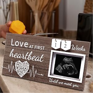 Unique Count Design: “Weeks until we meet you” and set of numbers to place a count until the baby’s arrival with this countdown picture frameLovely and Adorable Printing: “Love At First HeartBeat”, a good choice for nursery decor for girls boys.High-quality material: Made of thick solid wood, rustic and sturdy, perfect for a keepsake forever.Perfect Size: Fits photo size below 4×6 in perfectlyReal Glass Protection: Covered with a high definition glass, the photo inside is well protected