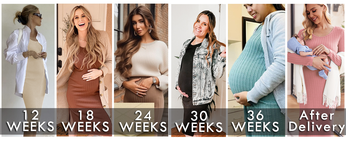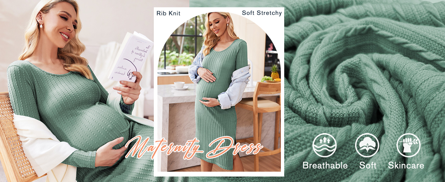 Ekouaer Maternity Dress Rib Knit Long Sleeve Side Slit Bodycon Dresses Pregnancy Baby Clothes, S-XXL
