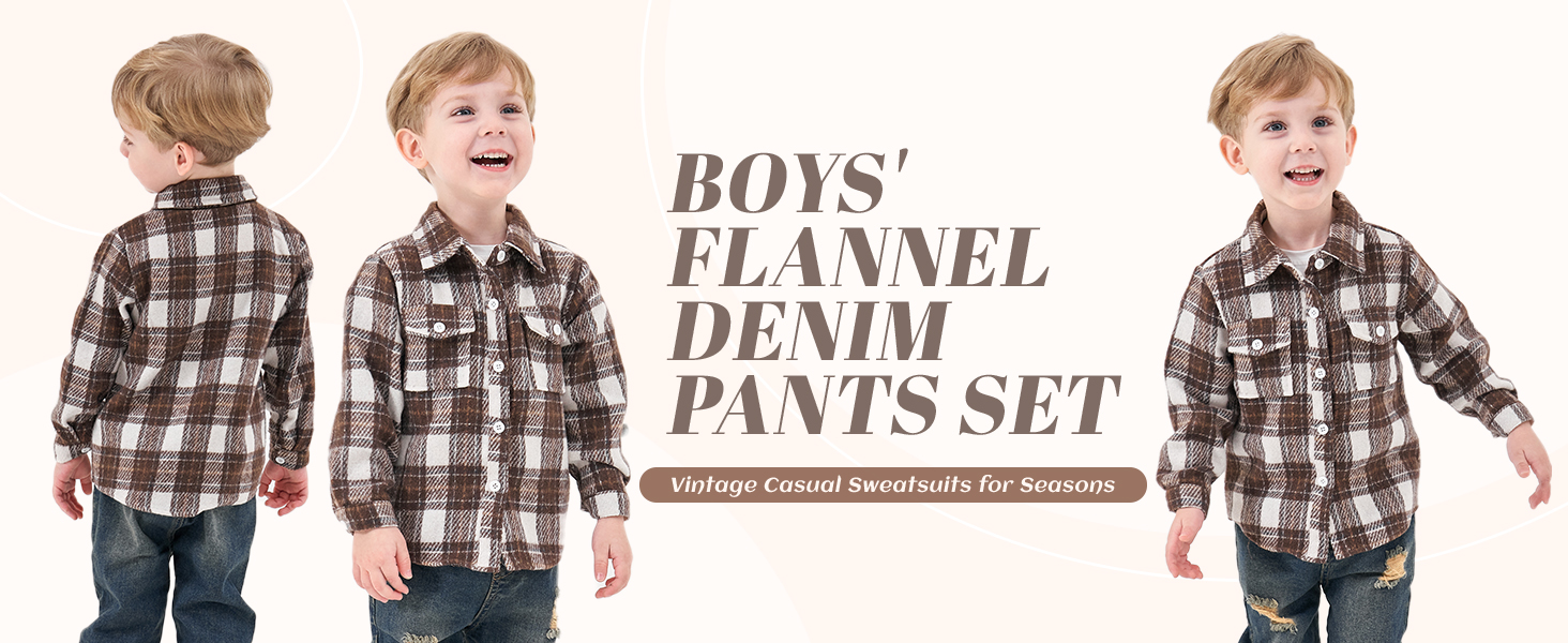 Volunboy Baby Boy Clothing Sets, Long Sleeve Flannel Shirts + Blue Ripped Jeans 2PCS Fall Winter Casual Outfits
