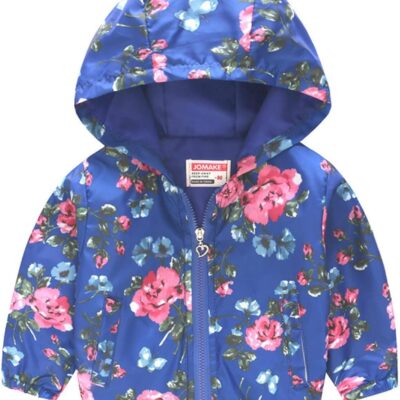Toddler Kids Baby Boys Girls Cartoon Dinosaur Rainbow Camouflage Zip Windproof Jacket Hooded Trench Lightweight Kids Coats Windbreaker Casual Outerwear Baby Girl Floral Coat (Blue, 12-18 Months)
