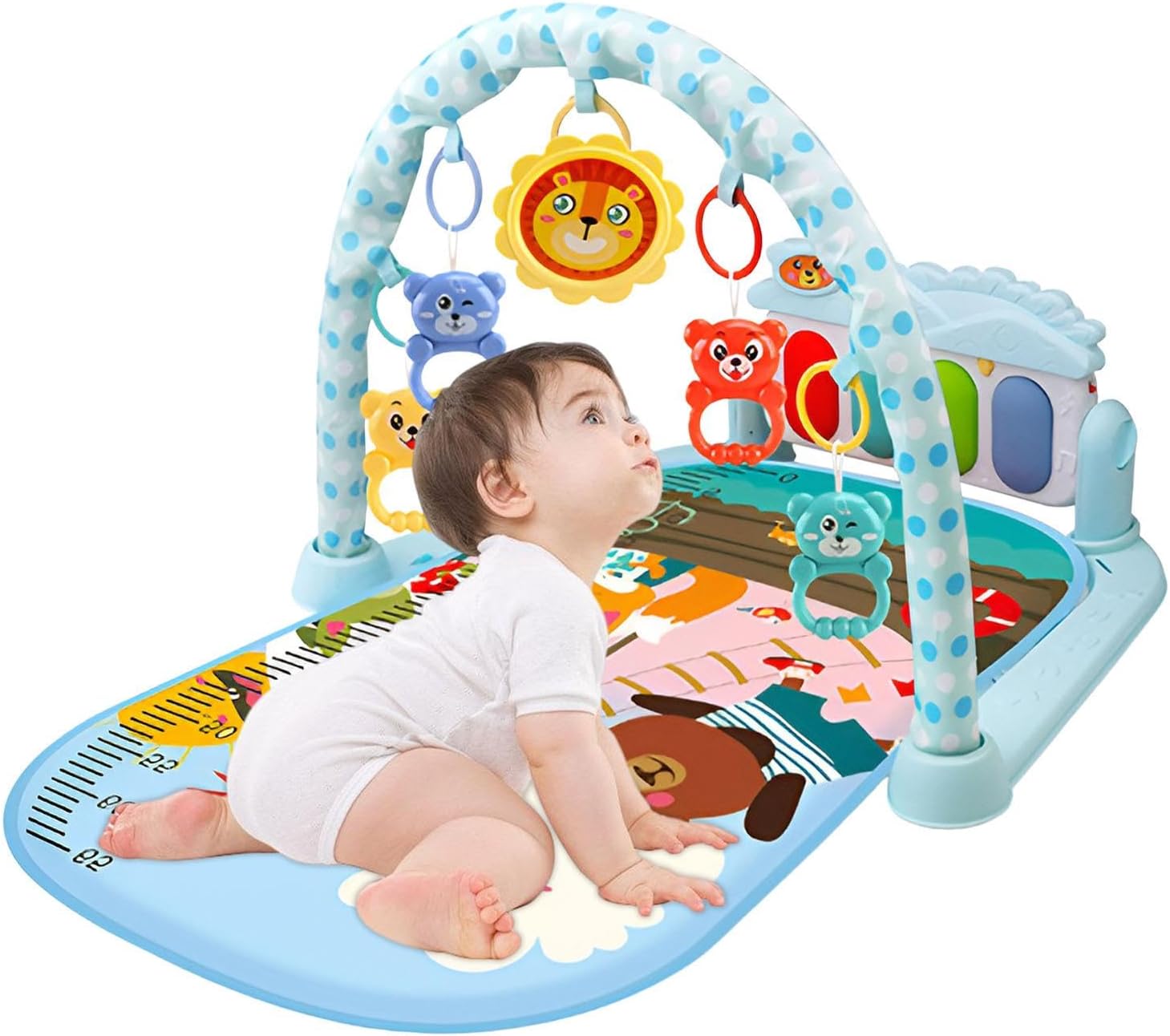 Jubepk Kids Gym Mat, Musical Activity Center with Lights, 74x56x43cm Developmental Mat with Detachable Toys, Ideal for Boys and Girls to Enhance Motor Skills