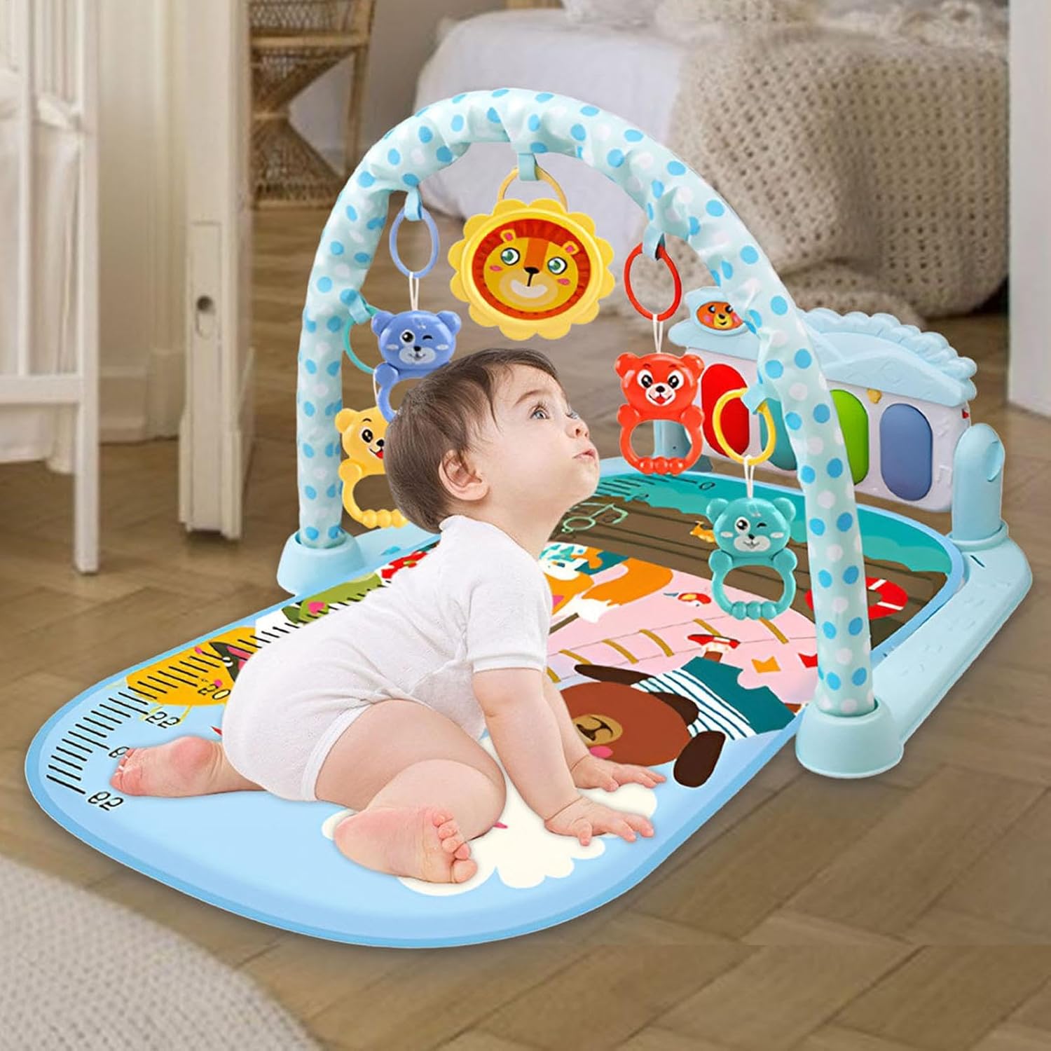 Interactive & Engaging : The Kids Gym Mat features musical sounds, flashing lights, and colorful toys to stimulate your baby’s senses. It promotes sensory development, offering a fun and exciting way to learn while playing.