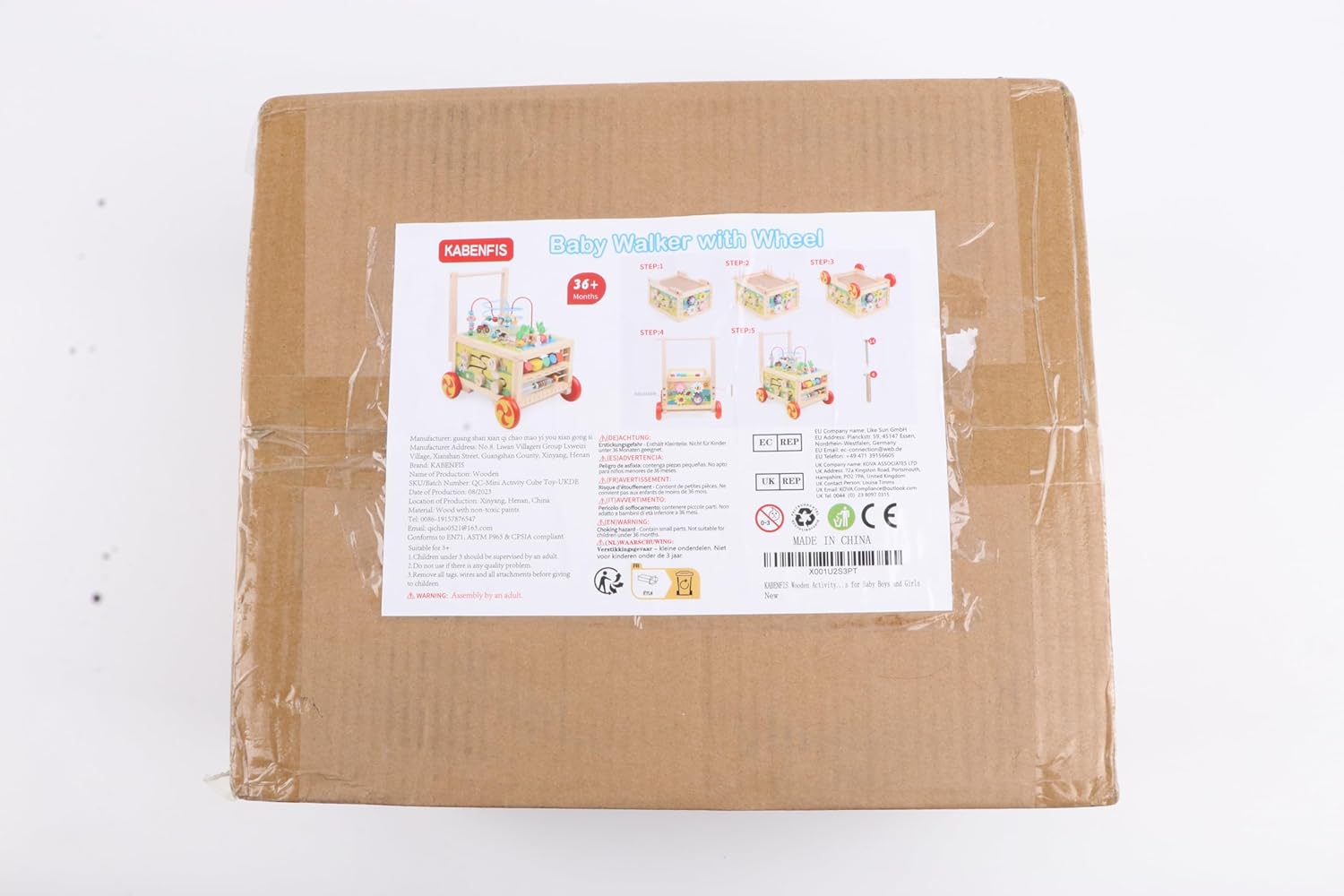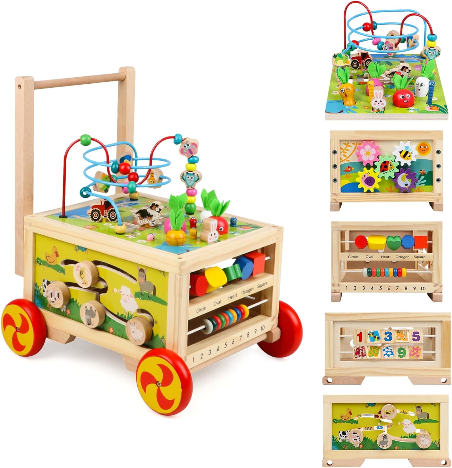 KABENFIS Wooden Activity Cube with wheels for Baby Boys and Girls