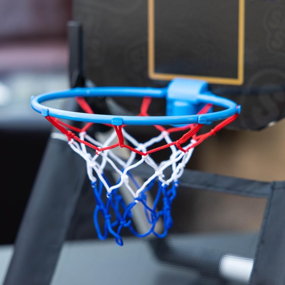 RETURN NET: bounces the ball back after making the basket. Set includes: basketball hoop with return net, ball and pump, suitable for ages 3+