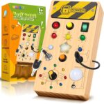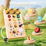 [ Rich Color Design & Diverse Gameplay ] – Our toddler busy board is equipped with a variety of different styles of LED bulbs, and has vibrant color-matching; 8 specially designed switches, and each switch has a different way of opening; Toddlers can not only use our busy board to identify different colors and sizes to enhance their cognitive and sensory abilities; they can also exercise their hands-on and thinking skills through various ways of opening switches