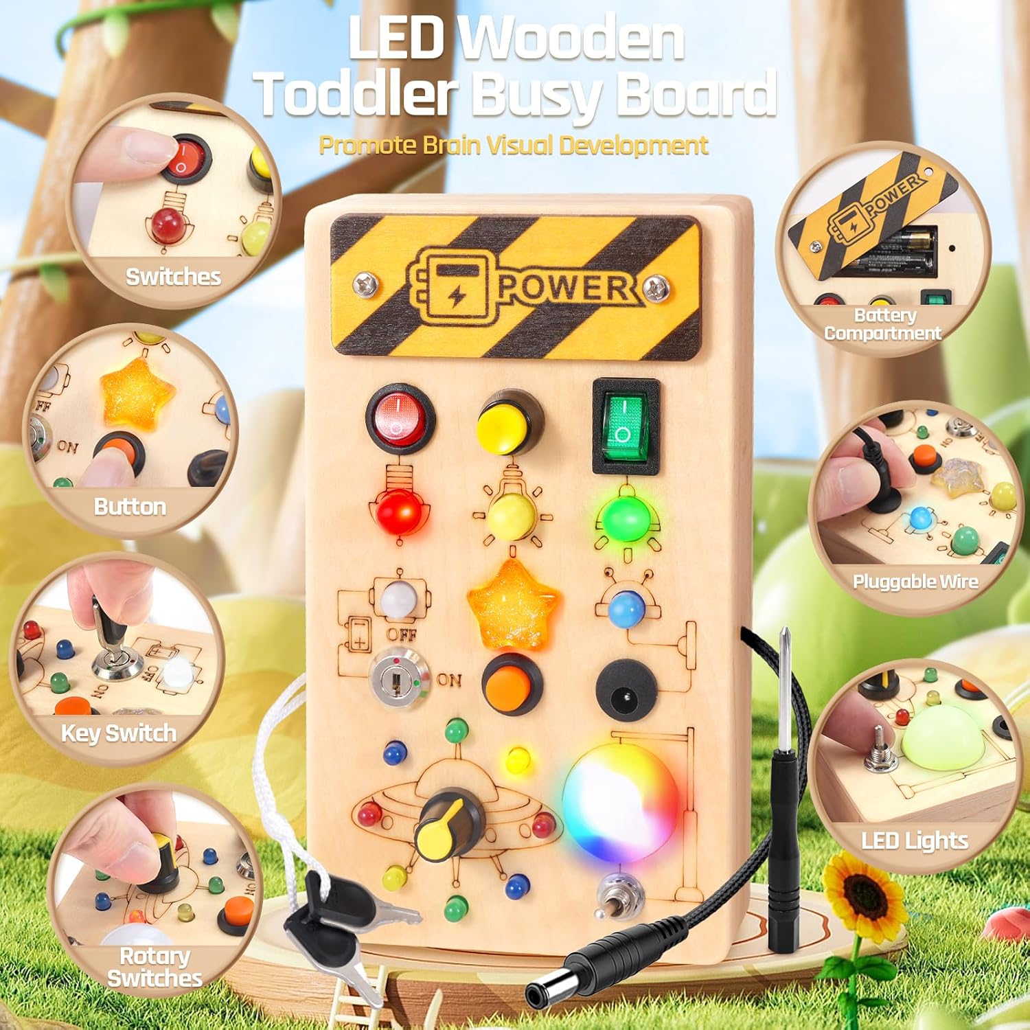WEARXI LED Wooden Toddler Montessori Busy Board