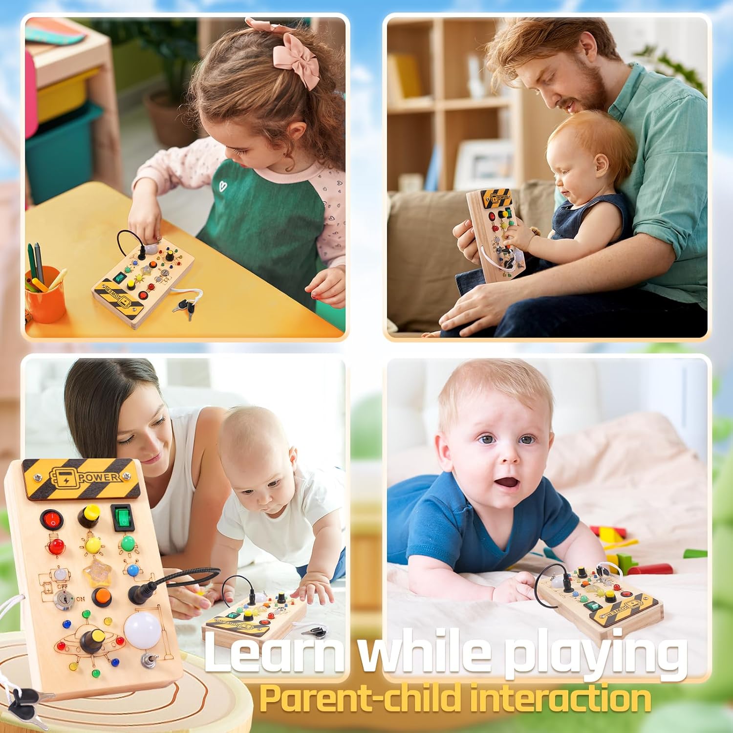 [ Learn While Playing ] – A Great Learning Toys for girls & boys. This Wooden LED Busy Board helps babies develop fine motor skills, practice hand-eye coordination, and color discrimination, and develop intelligence. This sensory toy is well constructed and all the push buttons are the perfect size for toddlers to press easily. It is also a perfect Parent-child interaction toy. Your child needs more time with you and playing the Busy Board together will be a fun family time