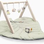 As a sit and play, your child can sit in the frame and play with the included activity pods – a turning click-clack bird, a fun ball popper, a spinning Ferris wheel, baby-safe mirror, sliding spinners, and detachable frog rattle