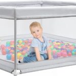 Trongle Baby Play Gym, Baby Play Mat Newborn with 5 Hanging Toys and 18 Ocean Balls, Lightweight Foam Stand Washable Soft Cotton Base, Playmats & Floor Gyms for 0-24months, with Carry Bag (80x80x55cm)