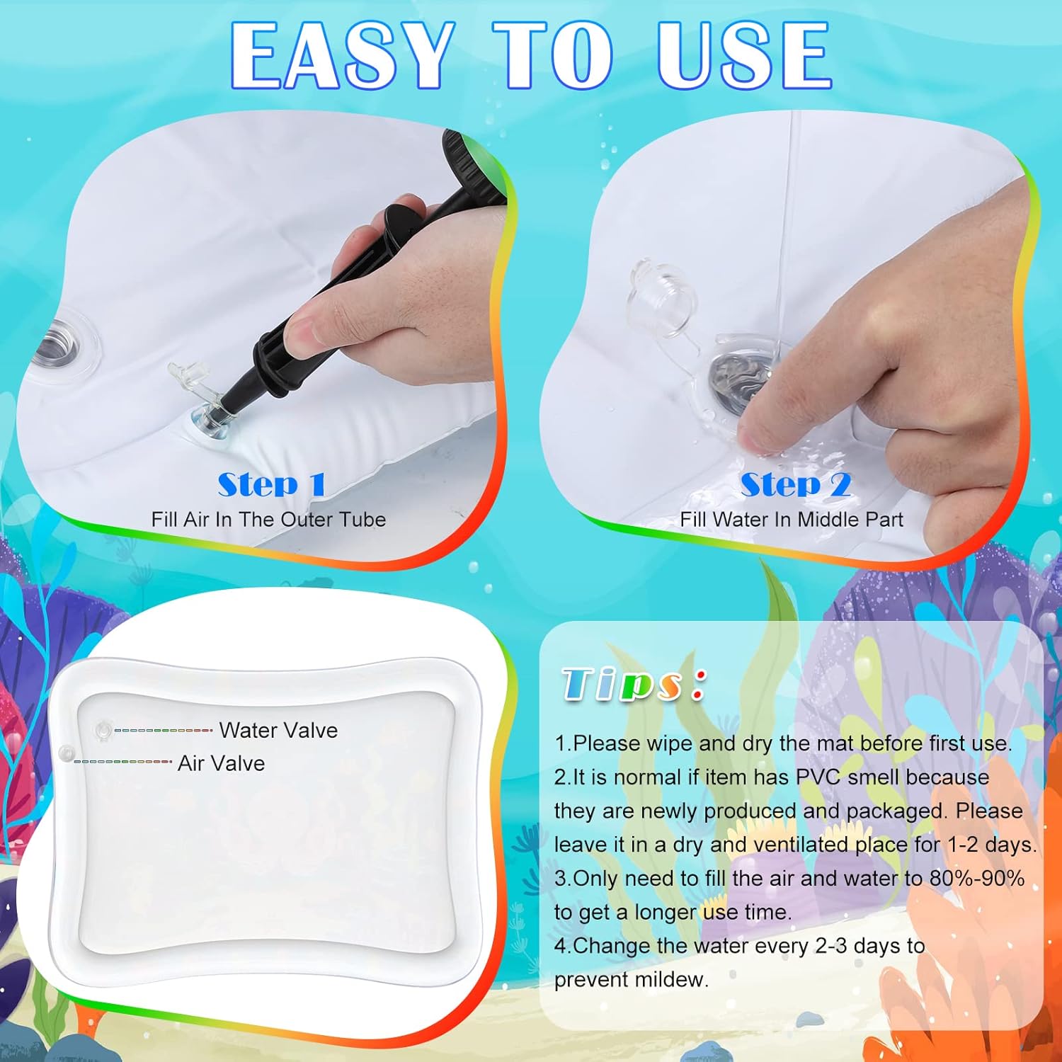 🐳Easy To Use-Simply fill the middle of the mat with water and inflate the outside, then lay the mat on an open area of the floor for baby’s tummy time! Can be used all year round, for best results fill with 80%-90% water.