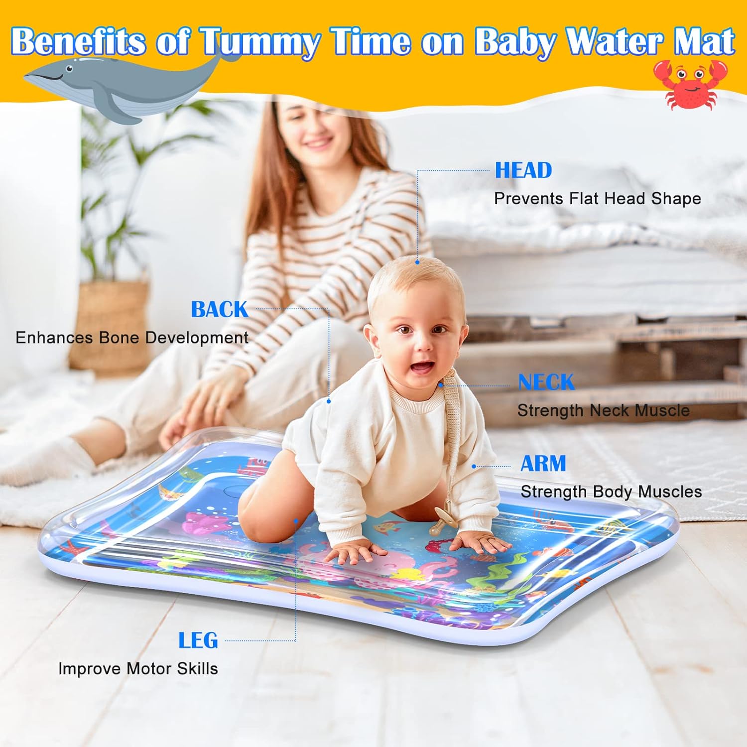 👶Early Developmental Tummy Time Water Mat For Babies-This baby play mats for floor helps with healthy motor, sensory and visual development, strengthens baby’s back, neck, shoulder and core muscles. Lays the foundation for reaching motor milestones, including rolling, sitting and crawling.