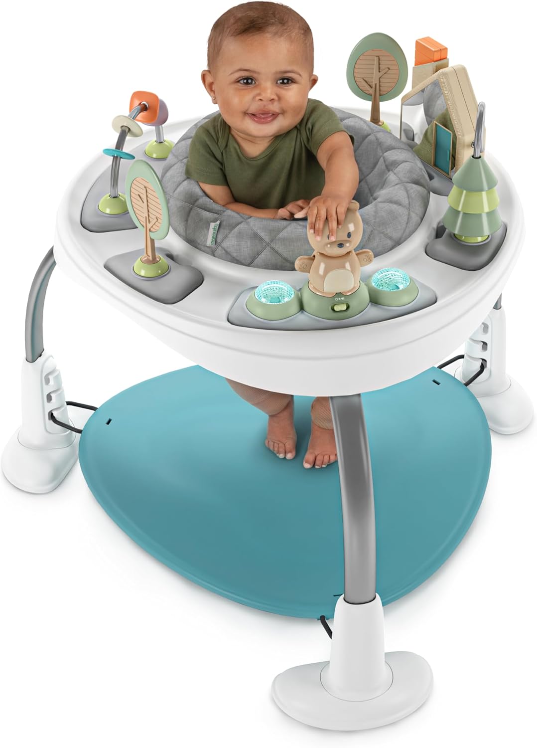 Ingenuity, Baby Activity Centre Jumper & Play Table 2-in-1 Spring & Sprout, First Forest, 11 Activities with Lights & Sounds, Development of Motor Skills, Adjustable Height, 360° Seat, 6-24 Months +
