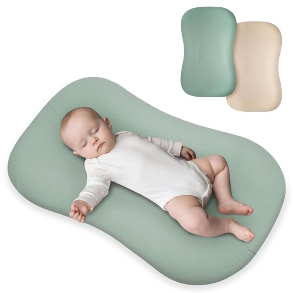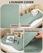 2 Pack Baby Lounger Cover Muslin, 100% Cotton Newborn Lounger Cover, Stretchy and Soft Lounger Slipcover for Boys Girls, Covers Only (Green, Wheat)