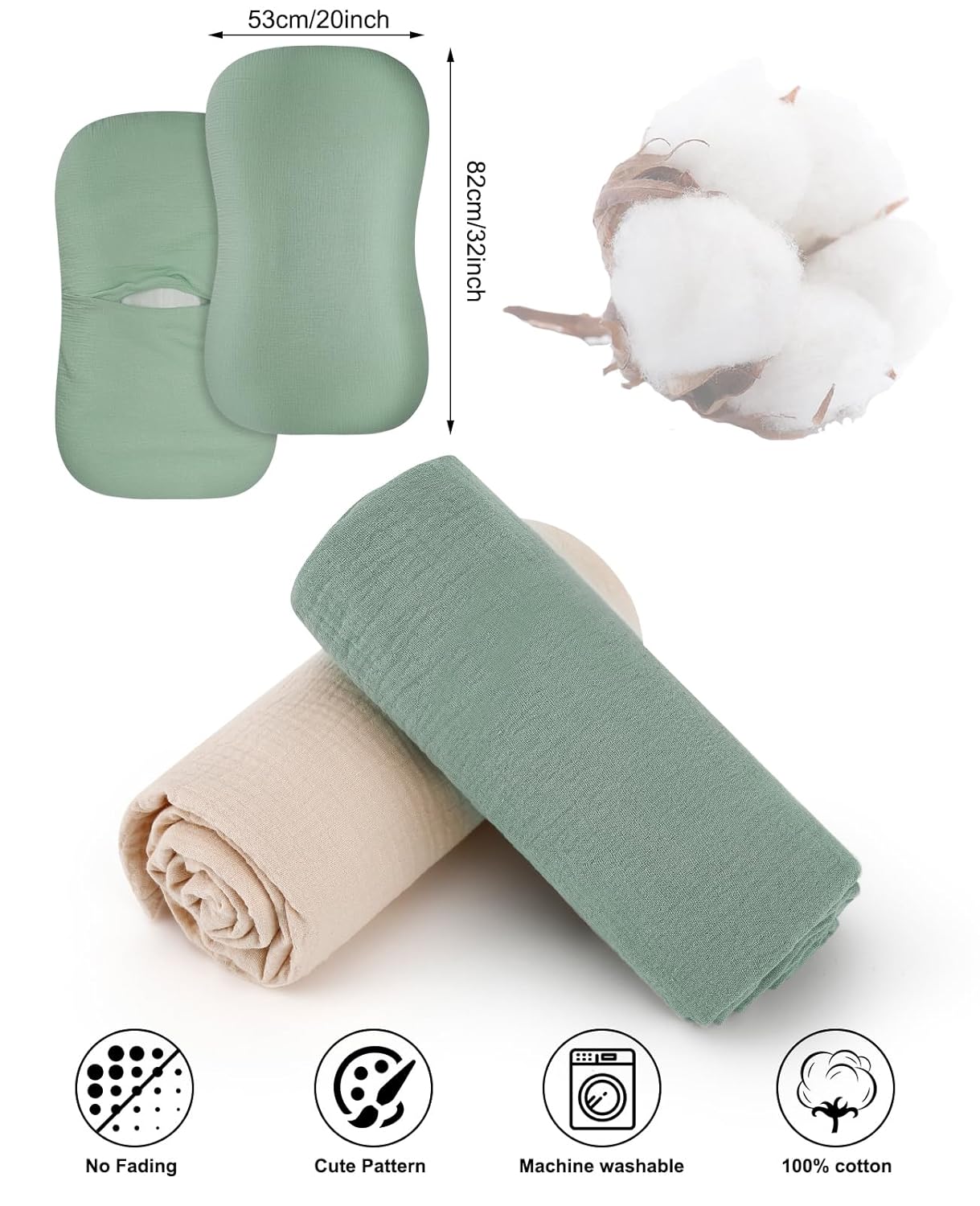 Premium Muslin Material: Crafted from 100% cotton muslin, these lounger covers offer superior breathability and softness, ensuring a cozy and comfortable resting place for your baby.