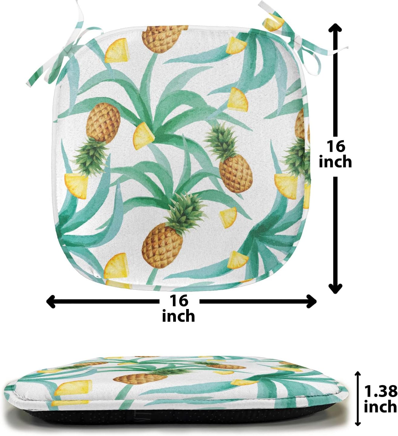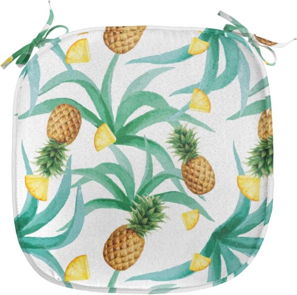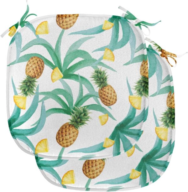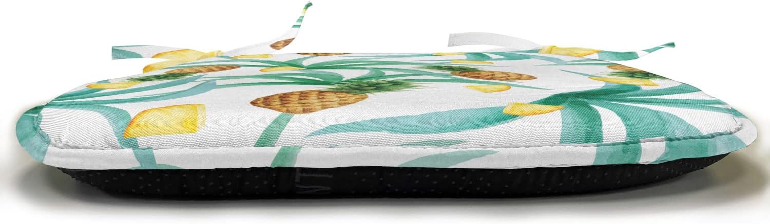 Ambesonne Hawaii Chair Seating Cushion Set of 2, Botany Inspired Traditional Luau Party Funky Polynesian Culture, Anti-Slip Seat Padding for Kitchen & Patio, 16″x16″, Jade Green Marigold