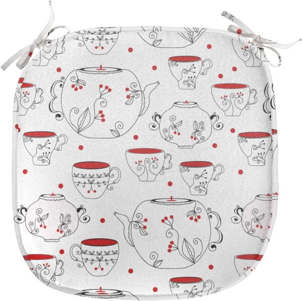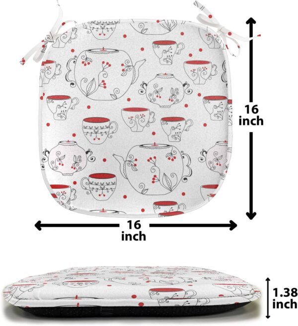 Ambesonne Tea Party Chair Seating Cushion, Doodle Style Crockery Illustration of Floral Patterned Kettles and Cups, Anti-Slip Seat Padding for Kitchen & Patio, 16″x16″, Red Black White
