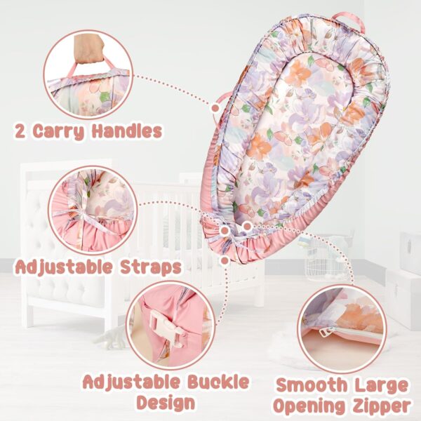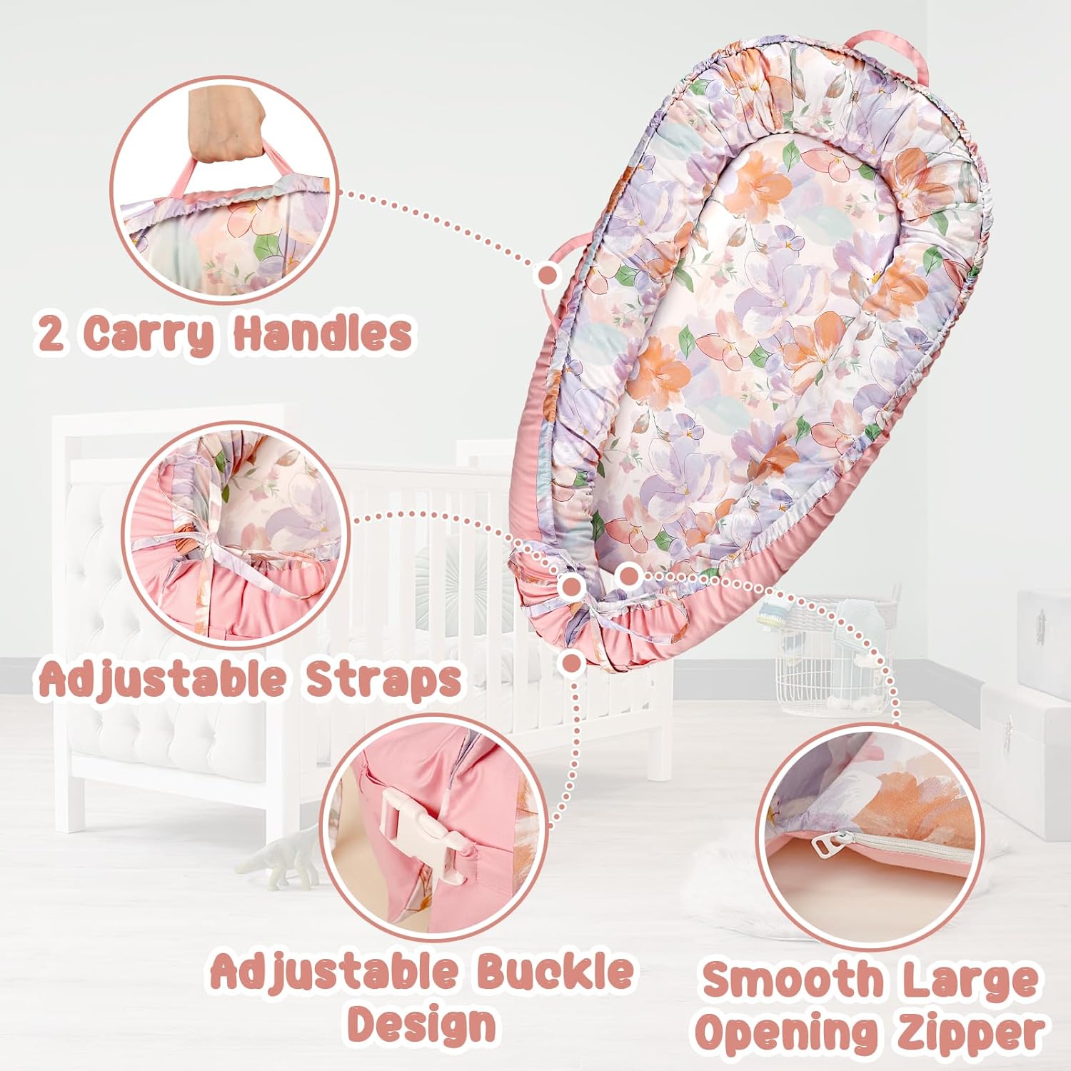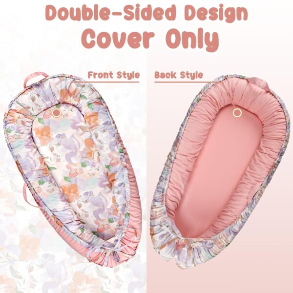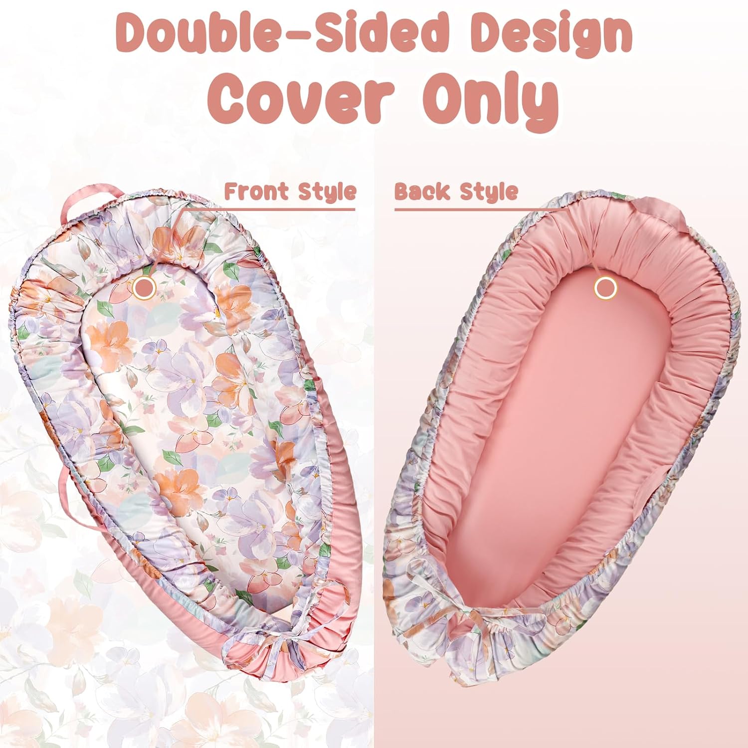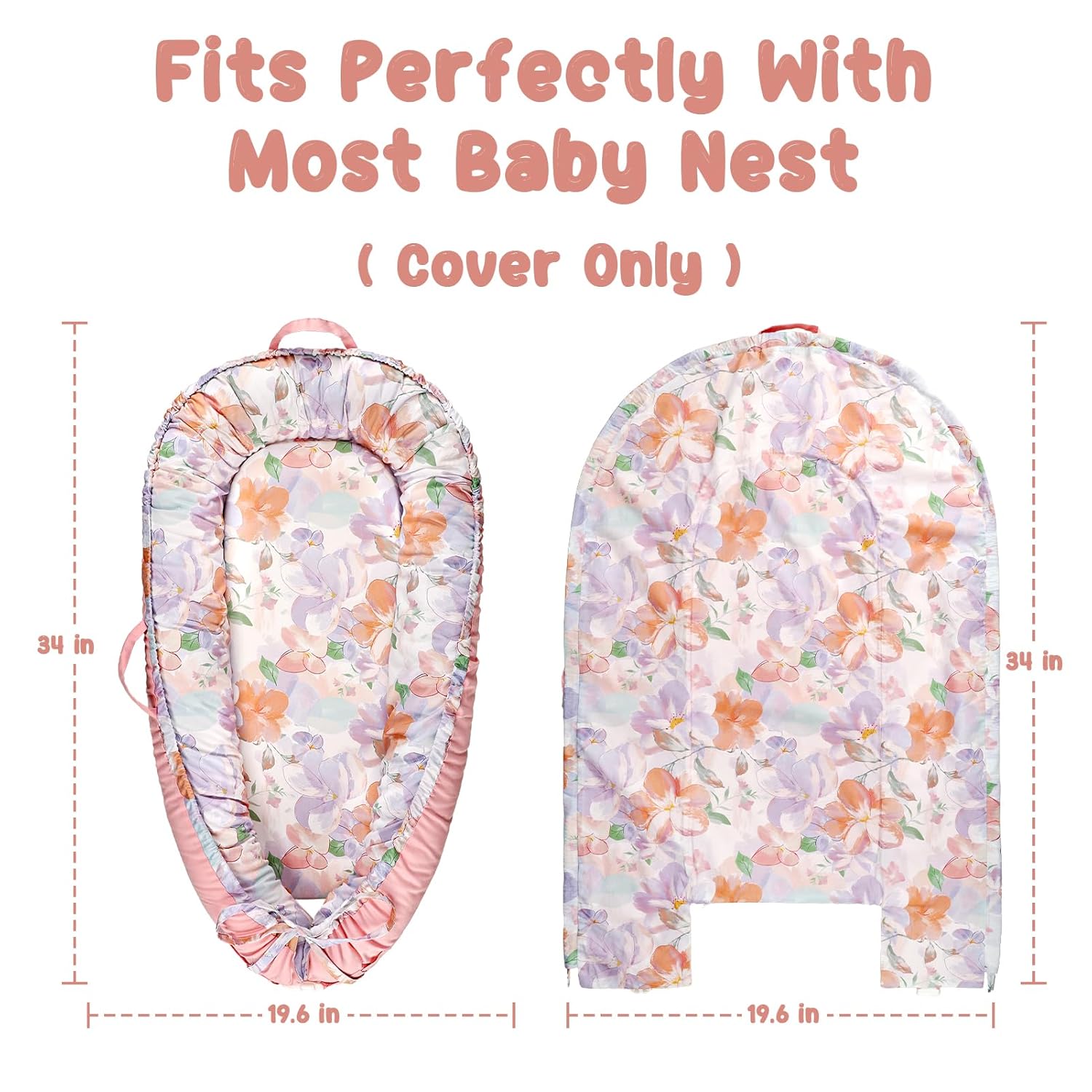 Baby Lounger Cover for Newborn Girls & Boys, 100% Cotton Replaceable Infant Nest Slipcover, Ultra Soft & Breathable Portable Lounger, Covers Only (Floral, Pink)