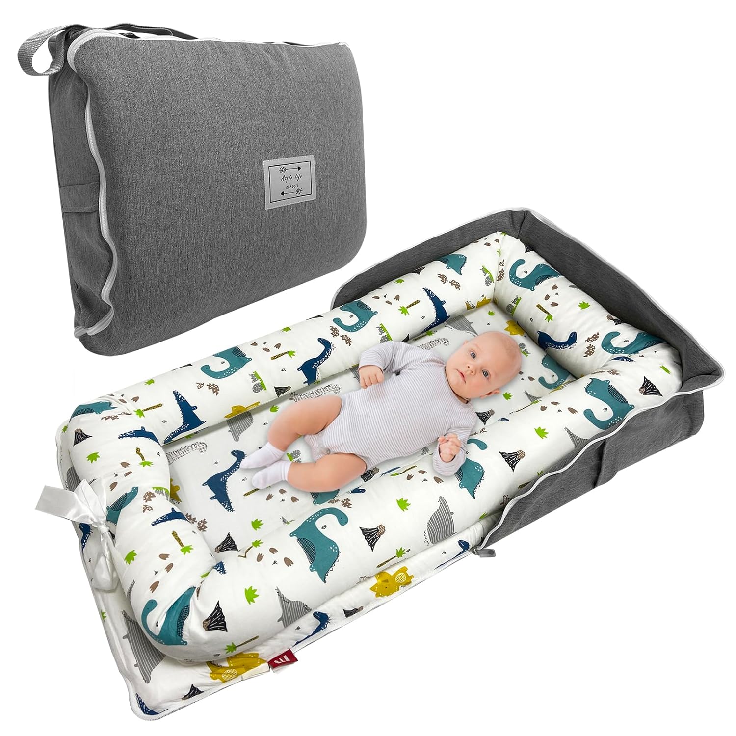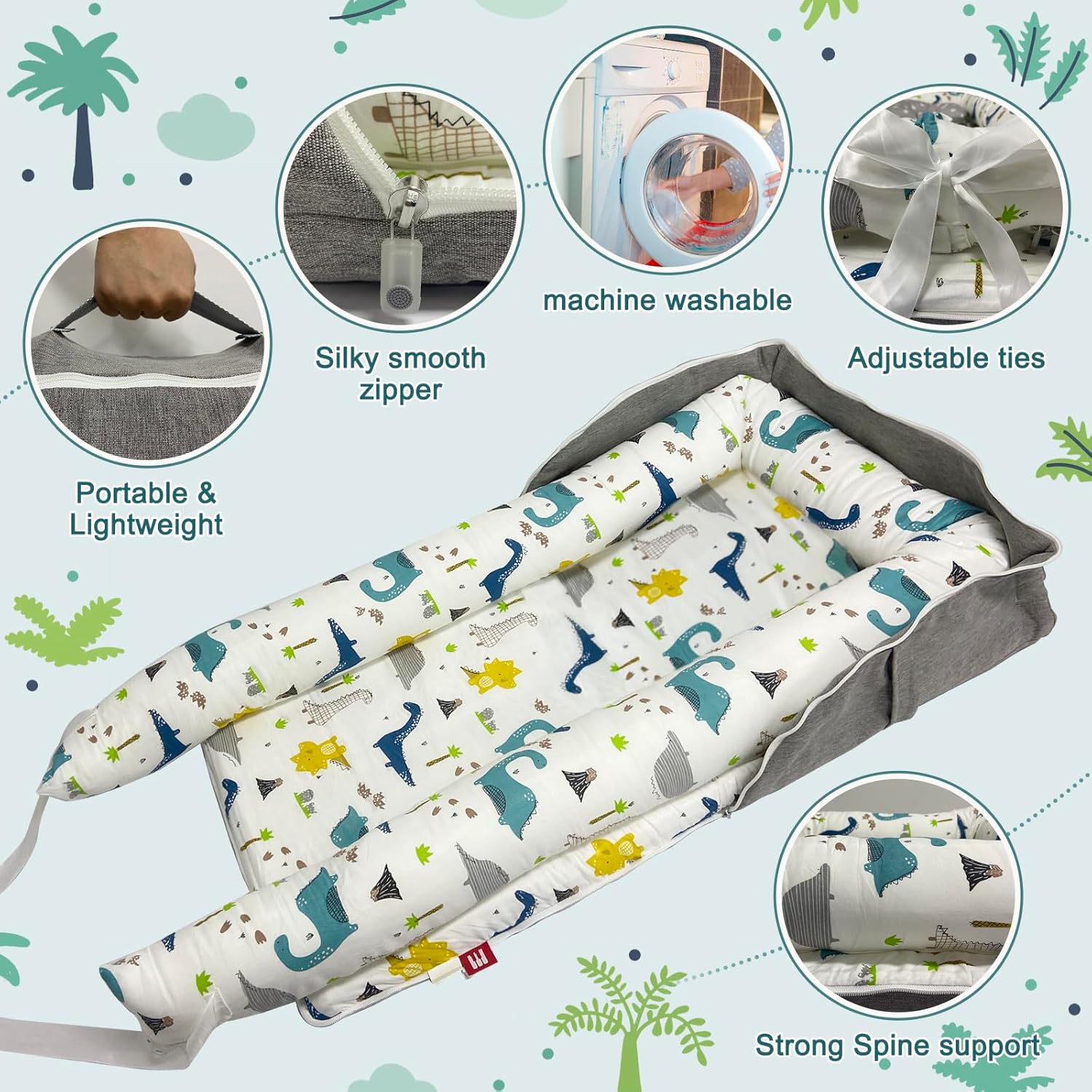 Baby Lounger, Foldable Portable Infant Lounger, Baby Nest Cover, Suitable for 0-24 Months Newborn Baby Lounger,Home Travel Dual-Purpose Baby Nest(Blue Dinosaur)