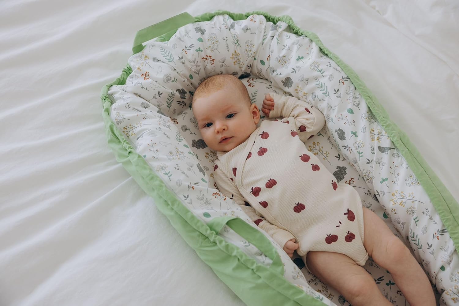 Baby Lounger (Green/White, Forest) – for Newborns to Toddlers Between 0-24 Months + Portable + Water-Resistant + 100% Cotton
