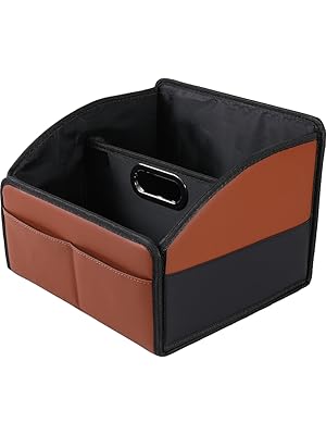 Non-deformable, wear-resistant, and waterproof. The black and brown leather car storage organizer complements any vehicle interior