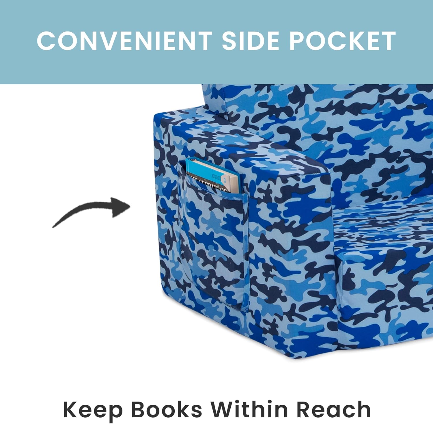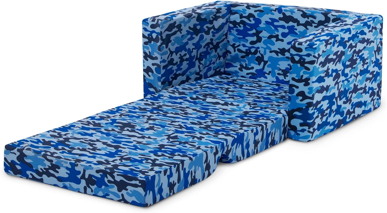 Delta Children Cozee Blue Camo Convertible Foam Chair to Lounger for Kids