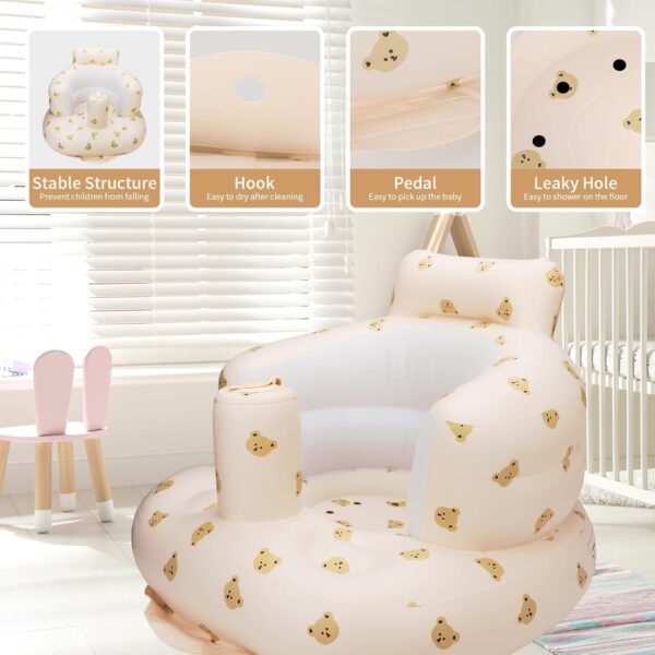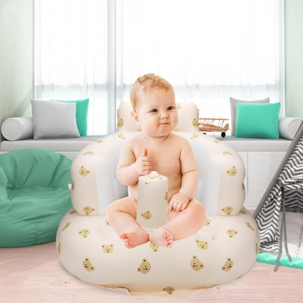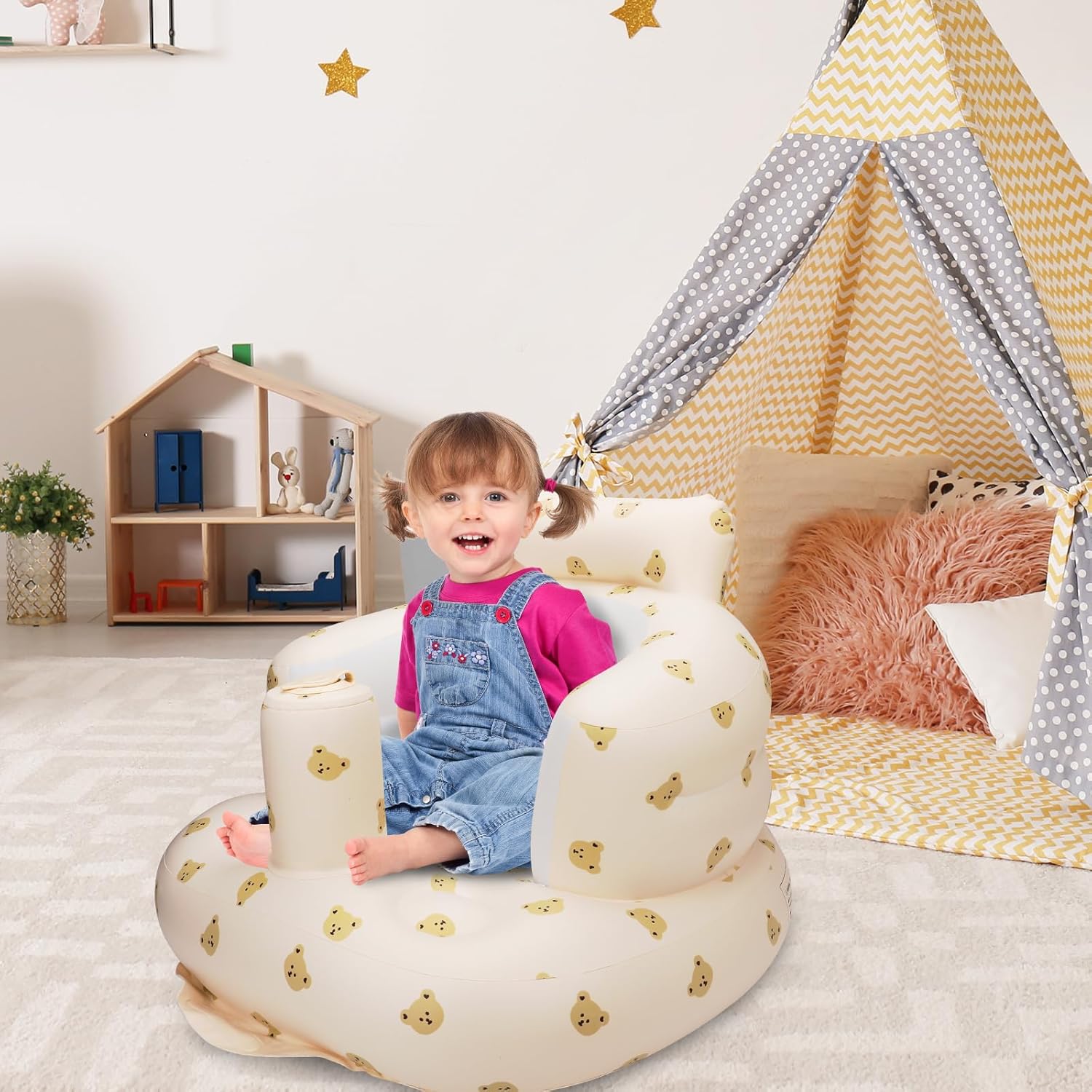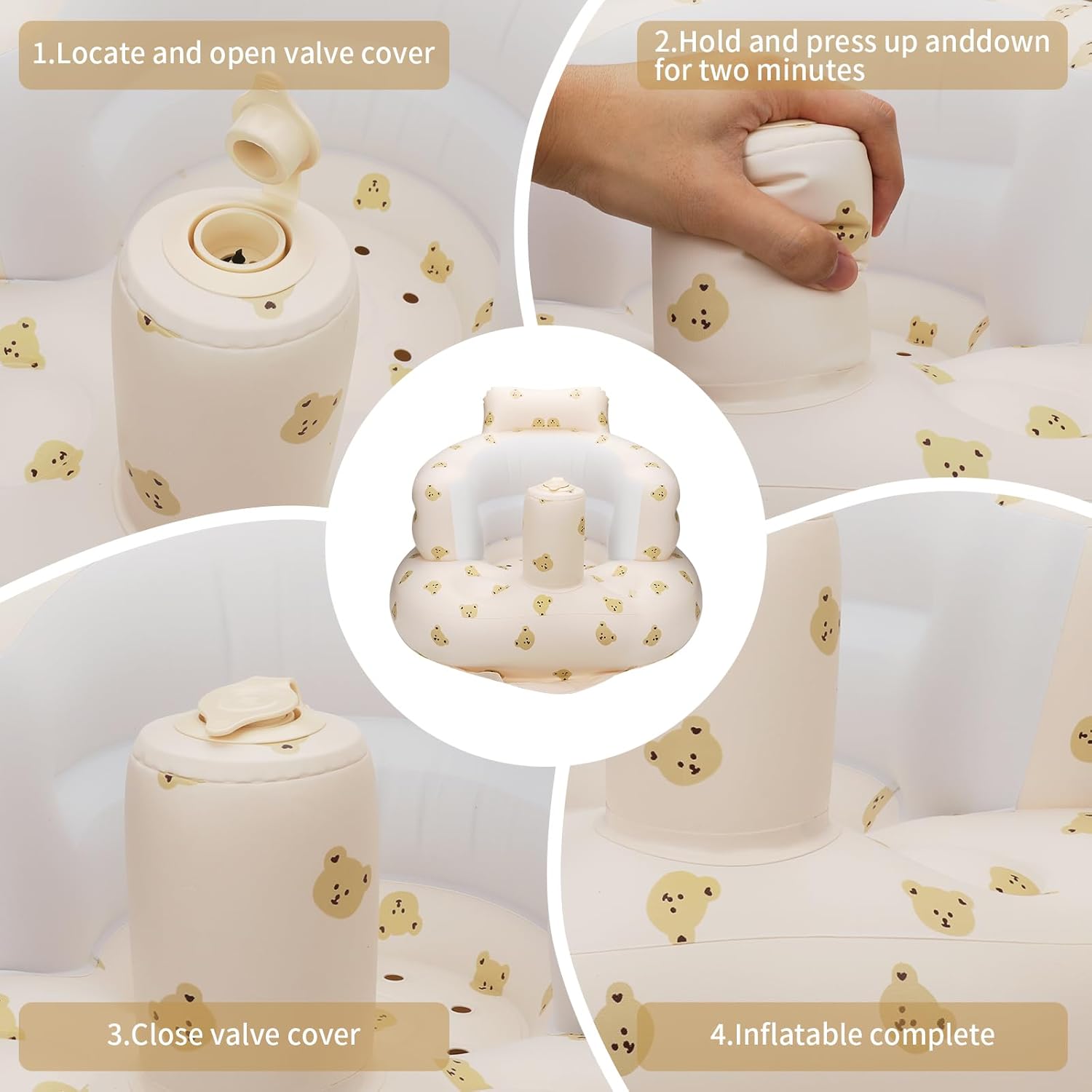 Inflatable Baby Seat for Babies 3 Months & Up,Baby Support Seat Summer Toddler Chair for Sitting Up,Baby Chair Floor Seater with Built in Air Pump (Bear Head)