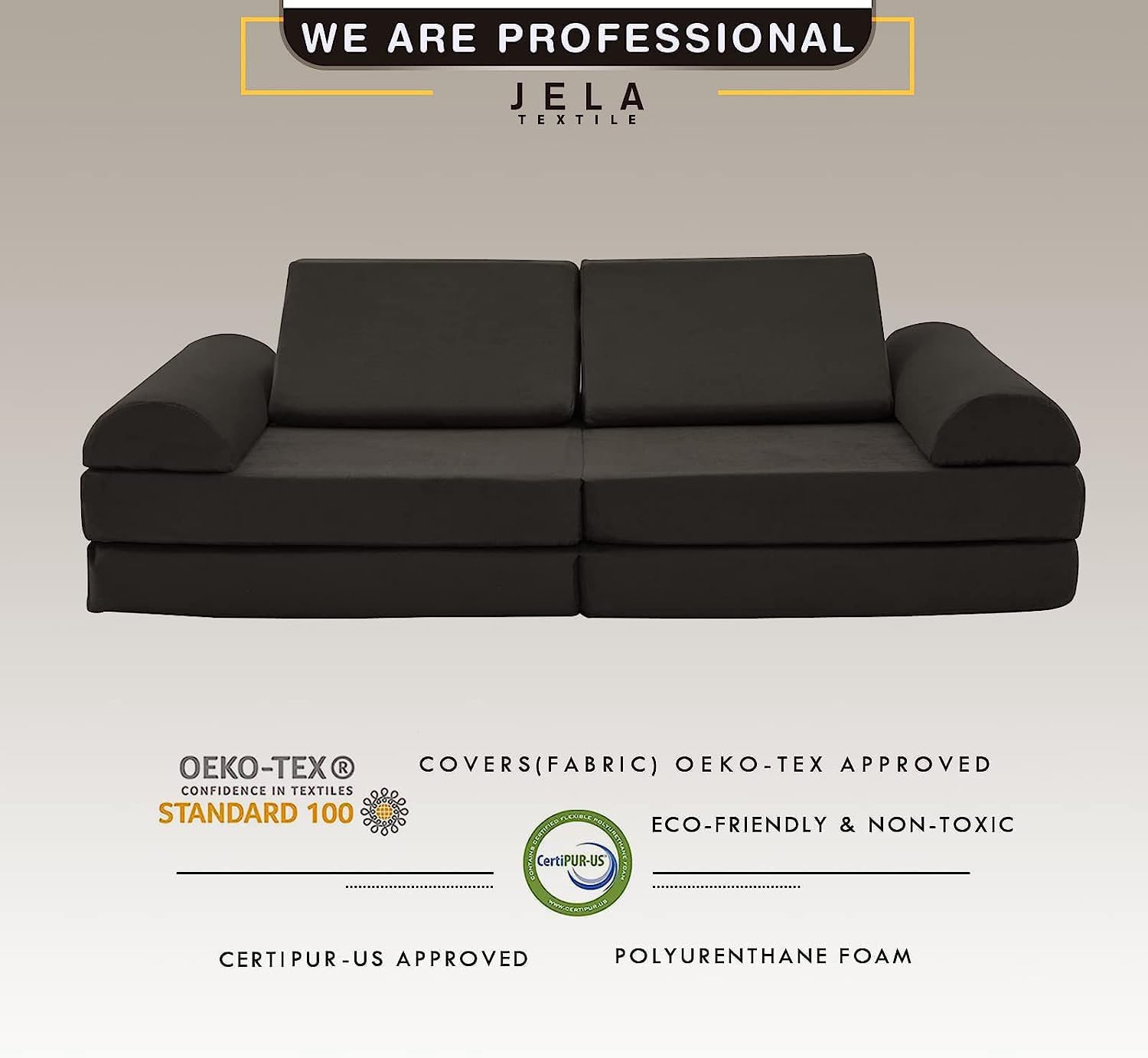 Selected material for kids – jela modular furniture adapts premium eco-friendly and nontoxic material to care your kids’ health with soft touch sense. The whole product has been passed CertiPUR-US which prohibits any CFCs use, or any harmful elements through the whole manufacturing.