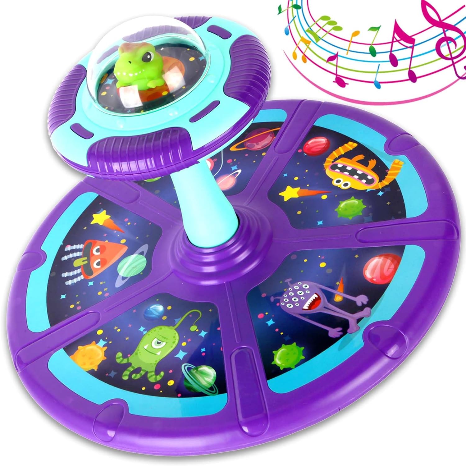 Toddler Sit and Spin Toy:This exceptional kids sit and spin toy combines spinning movements, music, charming flashes, and a series of charming dinosaur patterns. Use our dinosaur sit and spin toy to stimulate children’s imagination.The toddler spinning round and round, enjoy with music and lights.Its charming dinosaur design will take them to a magical world full of fun and adventure.Perfect for toddler girls and boys aged 1.5-3 years old.