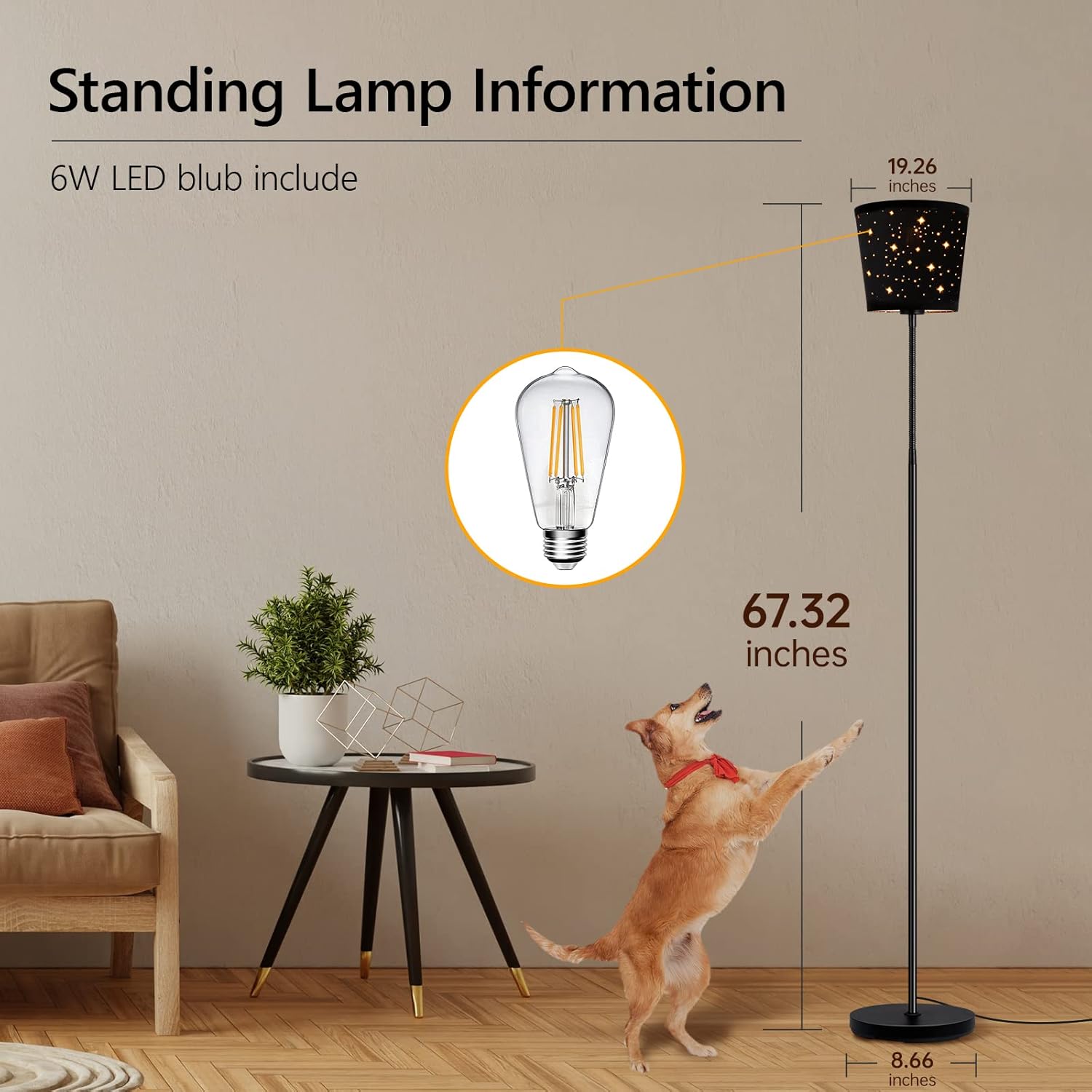 the floor reading lamp with the drum shape linen shade & 6W LED bright bulb (bulb included )casts the soft and 2700k warm white,highly simulated to natural daylight,reduce eye fatigue ;Foot switch and 6ft cord allows you to place the floor lamp anywhere you need it.