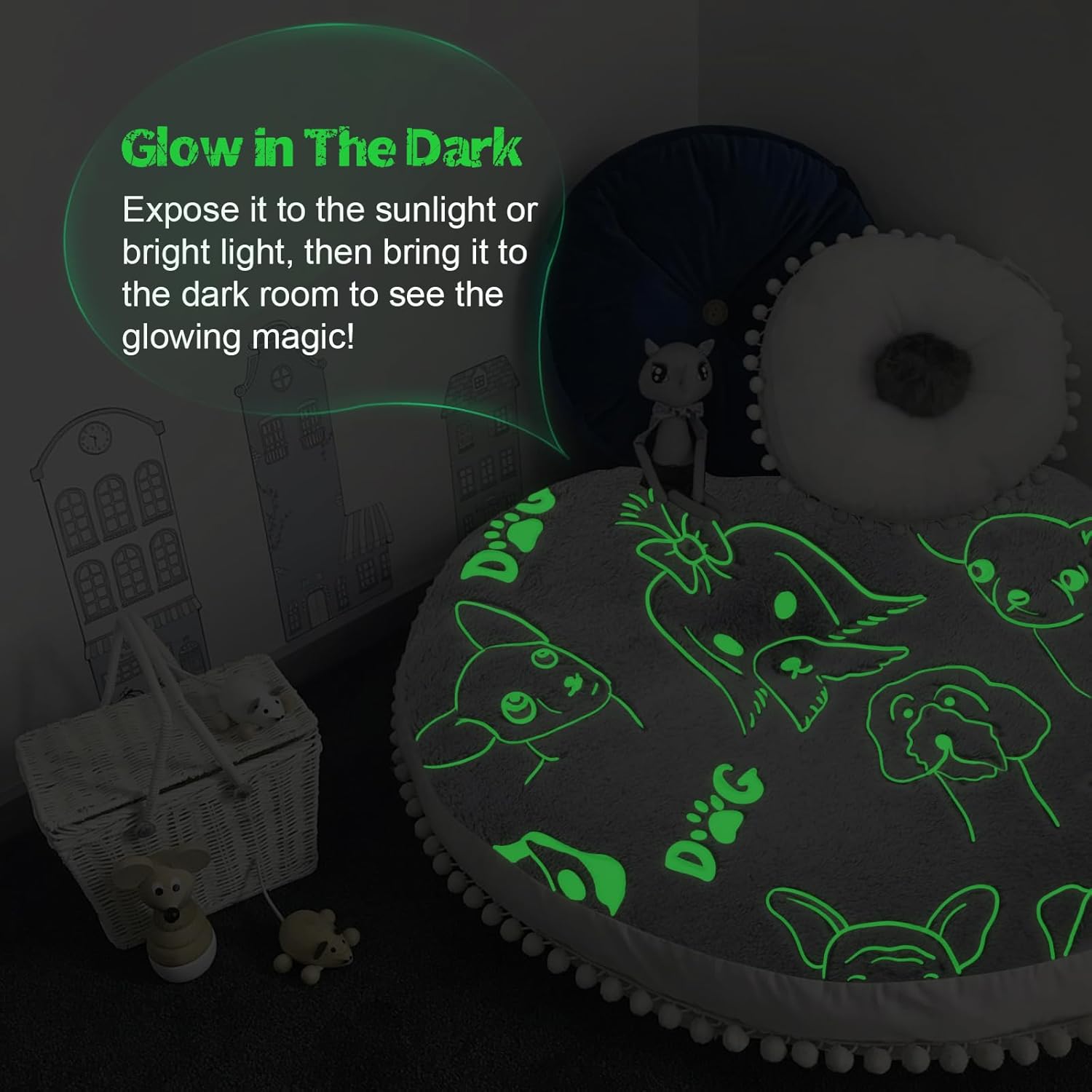 [Glow in The Dark, Dog Pattern] Compared to other kids’ round pillows, this kids’ floor pillow with cushion can glow in the dark, stylish and funny design for kids’ rooms. Simply expose the floor seat cushion under a bright light or sunlight for 30 minutes then take it into a dark room to see the magic. The soft glow is not too overpowering, which adds charm to the reading nook, teepee tent, bedroom, or playroom