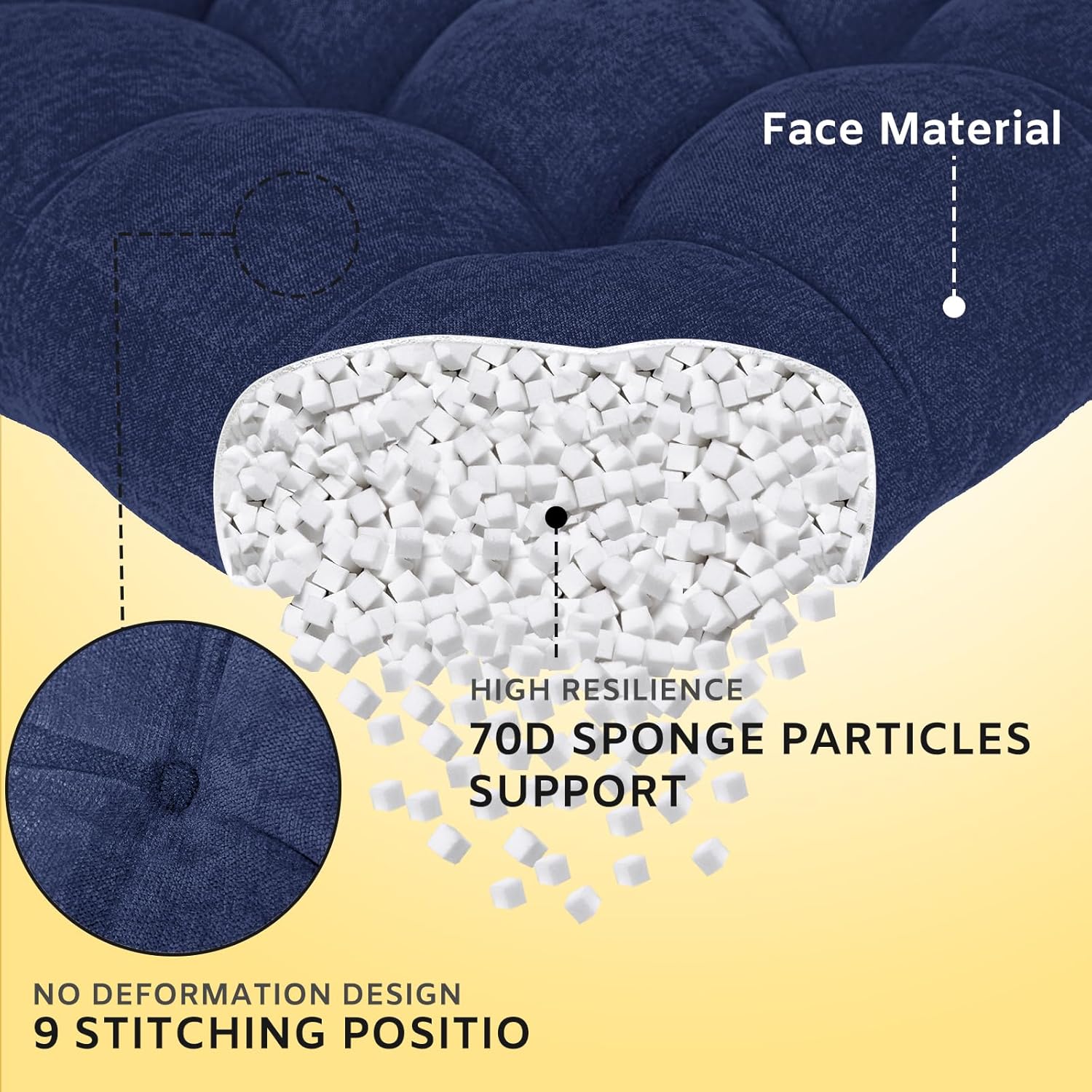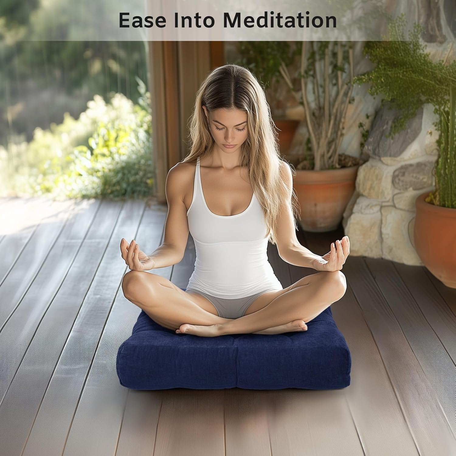 Millsilo 22 inch Floor Pillow, Large Floor Cushions, Square Floor Cushion Seating for Adults Kids, 4 Inch Thick Tufted Meditation Cushion for Yoga Living Room Tatami Floor, 22x22x4 Inch,Navy Blue