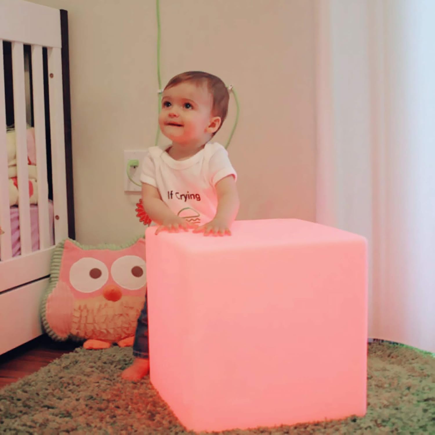 Mr.Go 12-inch Rechargeable Magic LED Light Cube Stool with Remote Control Fun Mood Lamp Soothing Night Light Decorative Lighting for Home Kids Bedside Bedroom Nightstand Nursery Pool Party