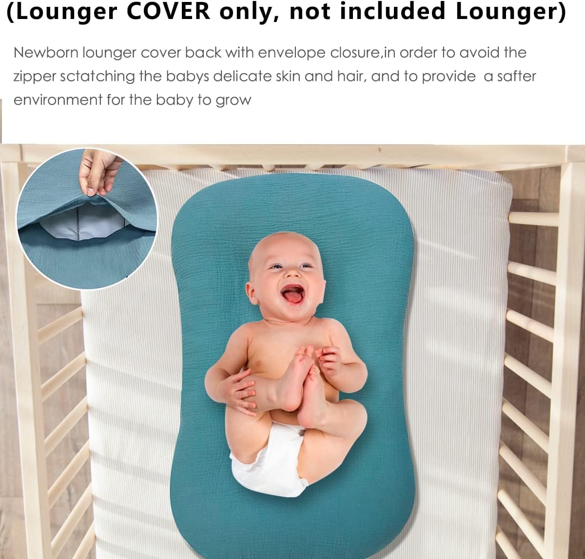 【Premium Material】- Thanks to the Premium quality organic cotton muslin, It is breathable, soft fabric that will keep the baby cool at hot weather, and warm when it get colder.( Lounger COVER only, not included Lounger )