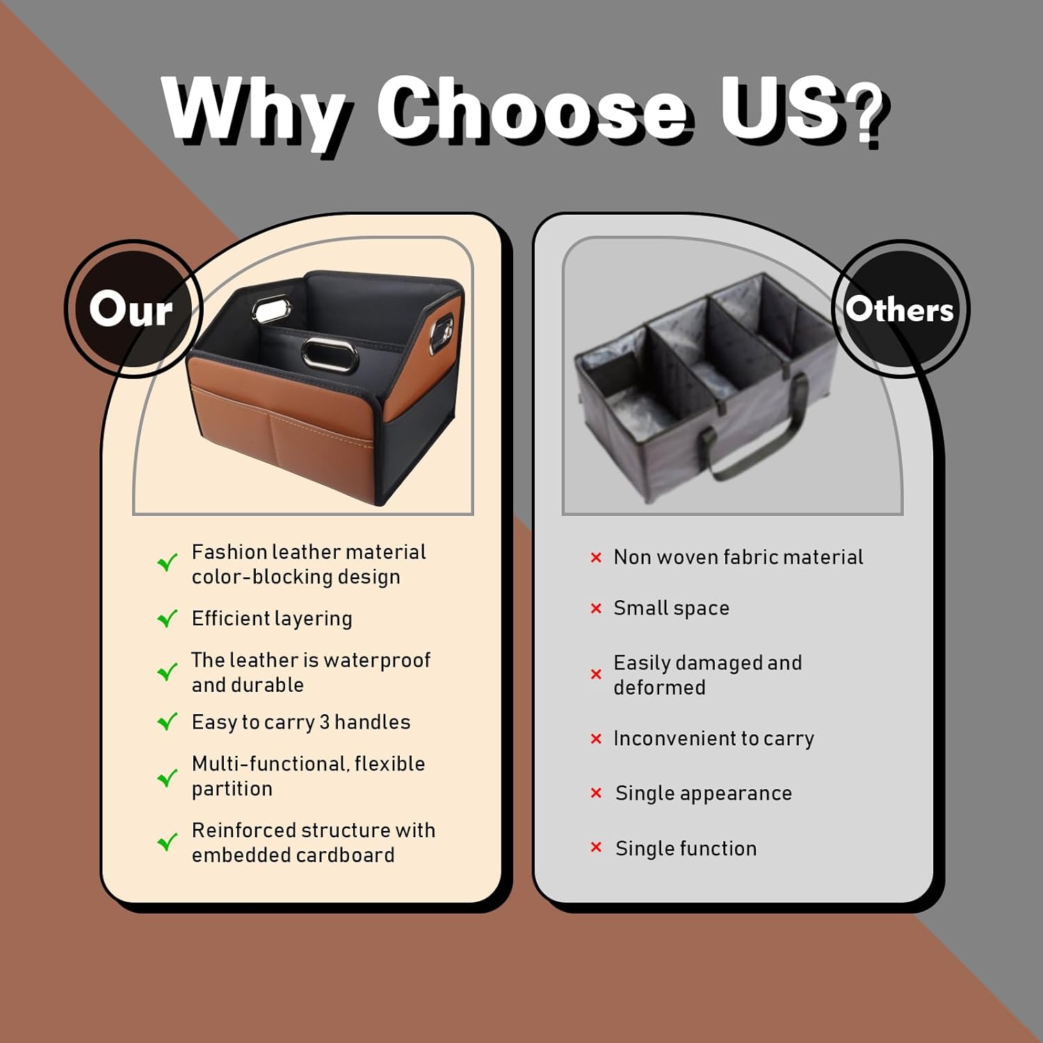 Removable design for adjust the internal space according to the needs to meet the needs of diverse storage, at the same time, you could hold the car organizer with only one hand.