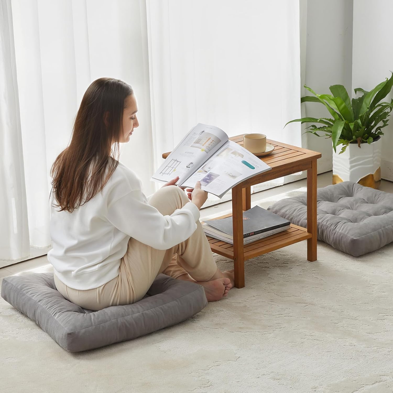 Quilmfoam Meditation Floor Pillow Cushions for Adults Kids Set of 2, Large Square Double-Side Corduroy Floor Pillows Seat Cushion, for Yoga Living Room Tatami Home Decor, Light Grey, 22x22x4 Inch