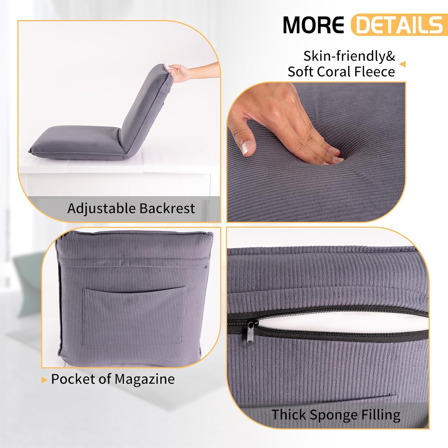 🎮【WIDELY USED】The 5 position floor seat is perfect for floor activities like games, reading, watching TV, meditation, etc