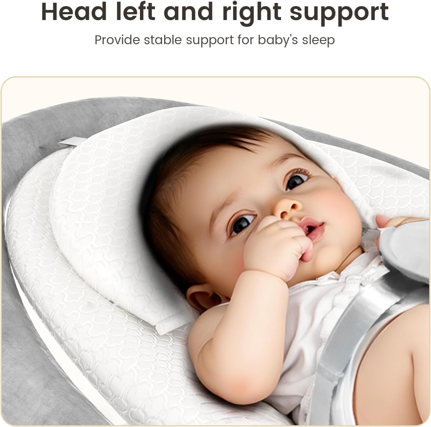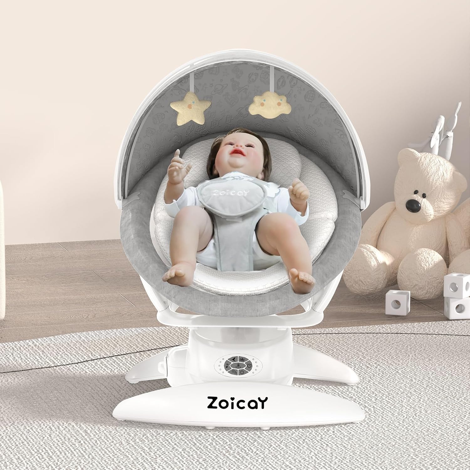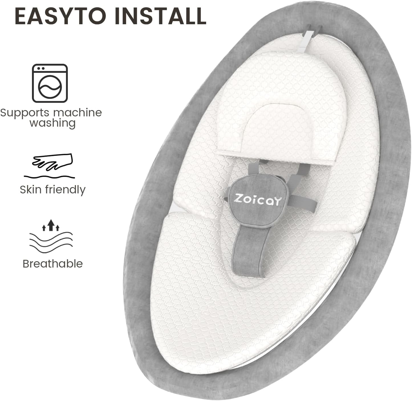 HIGH SAFETY — The lounger adopt ergonomic design, the 5-point safety harness structure is sturdier than the 3-point harness. The wide straps ensure is more comfortable while also guaranteeing their safety in the electric swing