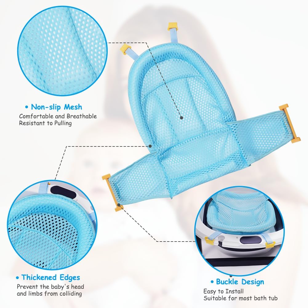 Aolso Baby Bath Net, Newborn Baby Bath Seat Support Baby Bather Net for Bathtub, Baby Bath Pad Non Slip Bath Seat Net, Bathtub Support Net Adjustable Bathtub Cushion Net for 0-3 Years