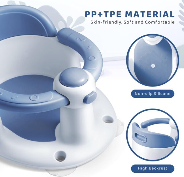 🛁【HIGH QUALITY MATERIAL】–This toddler bath seat is made of PP+TPR skin-friendly materials, non-toxic substances. It is the safest material for babies, please use it with confidence.
