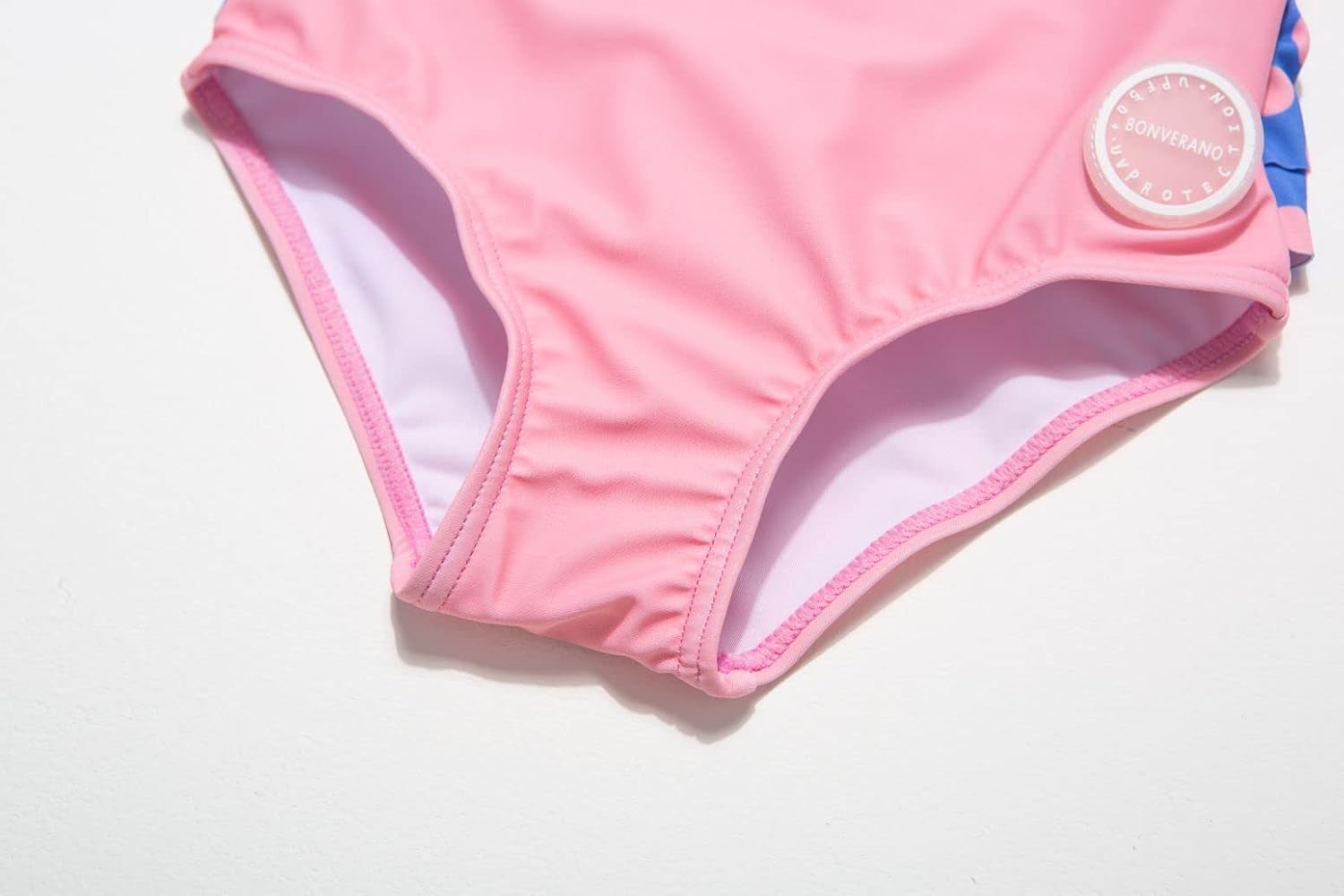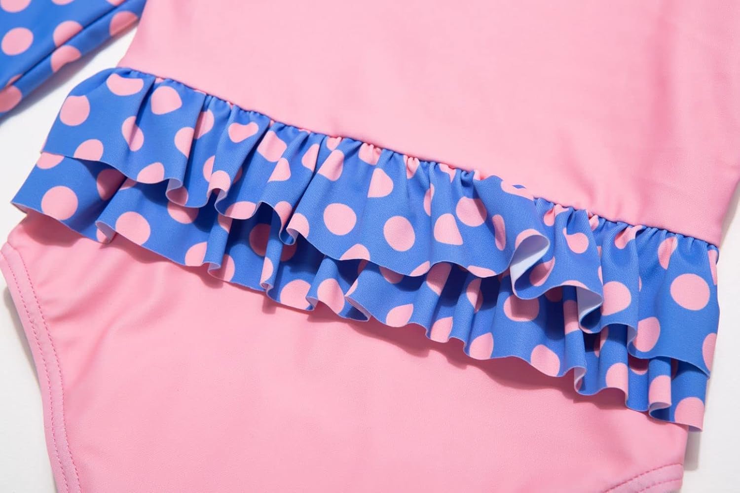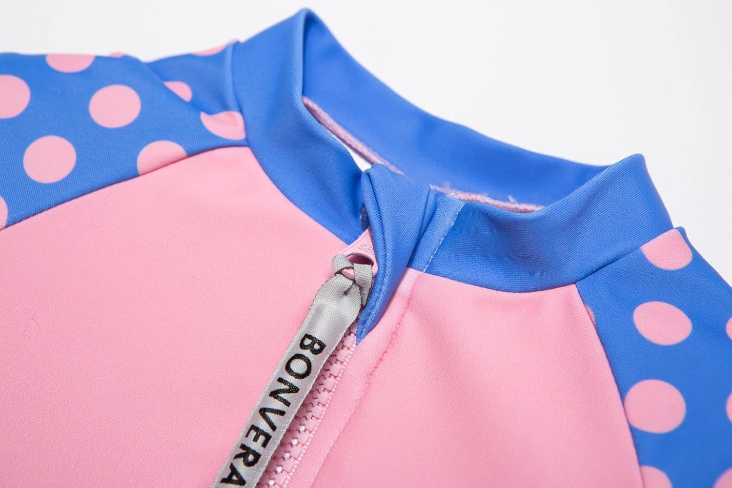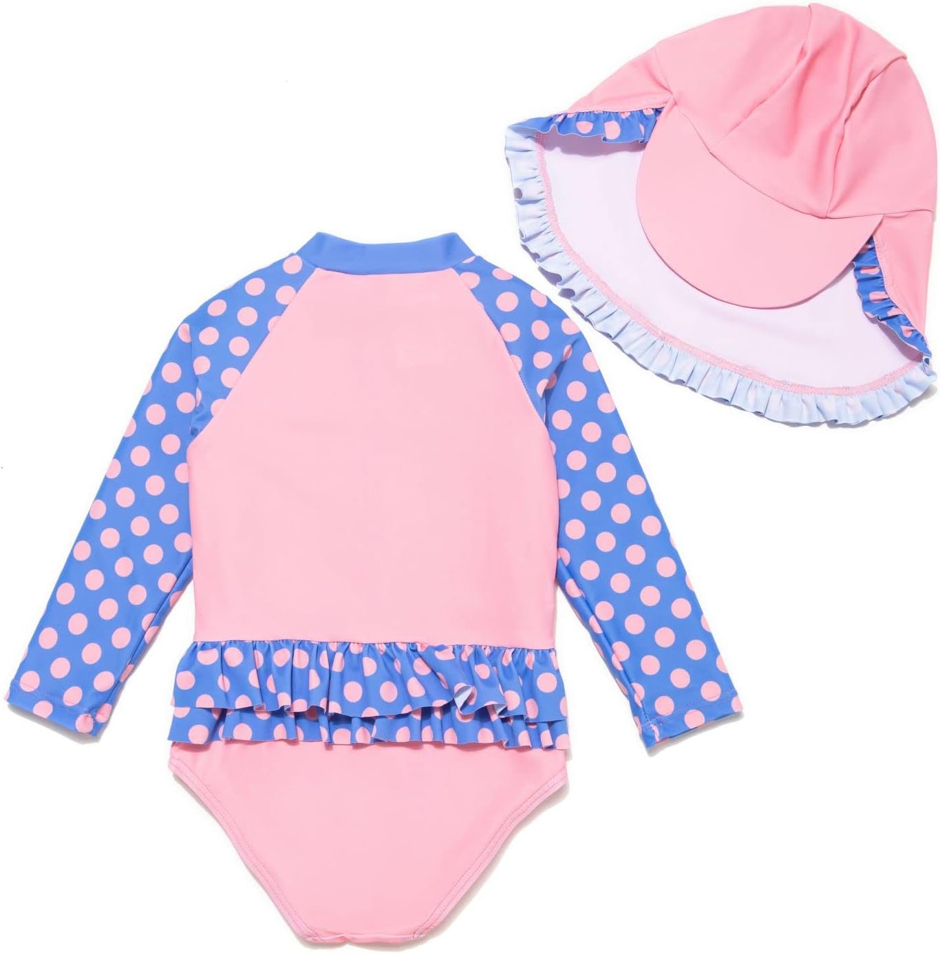 BONVERANO Infant and Baby Girl Swimsuits/Rashguard One Piece UPF 50+ Sun Protection Ruffle Zipper with Sun Cap.