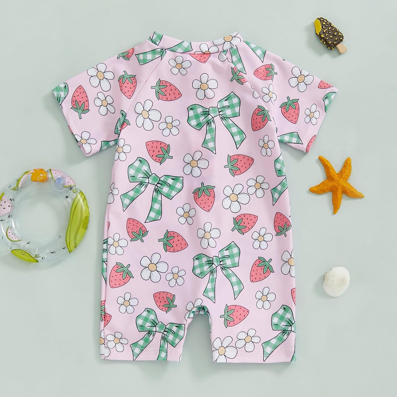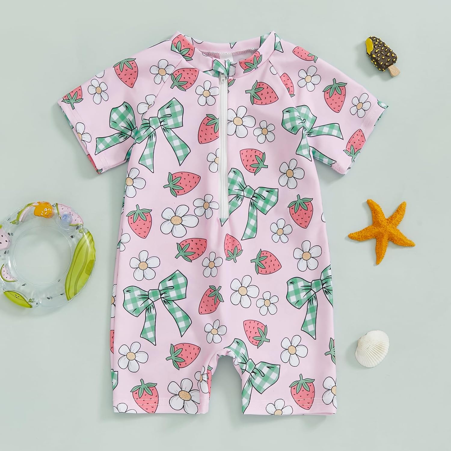 BYUSBAYA Toddler Baby Boy Girl Swimsuit One-Piece Zipper Short Sleeve Rash Guard Summer Sun Protection Beach Swimwear Bathing Suit