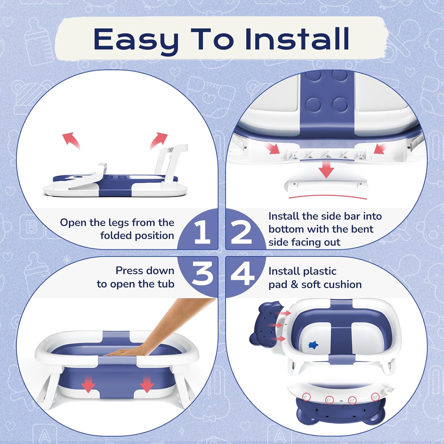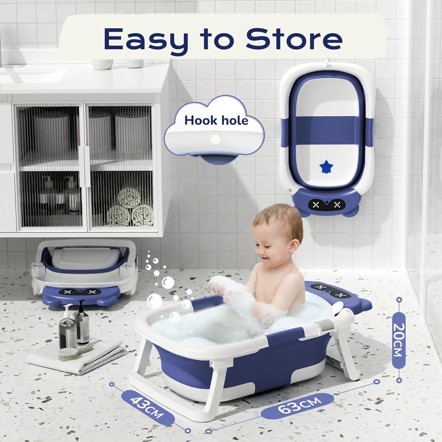 Portable and Travel-Friendly: Our portable baby bath tub is designed for families who love to travel. Its lightweight and foldable nature makes it easy to transport, allowing you to maintain a consistent bathing routine for your baby, no matter where you are