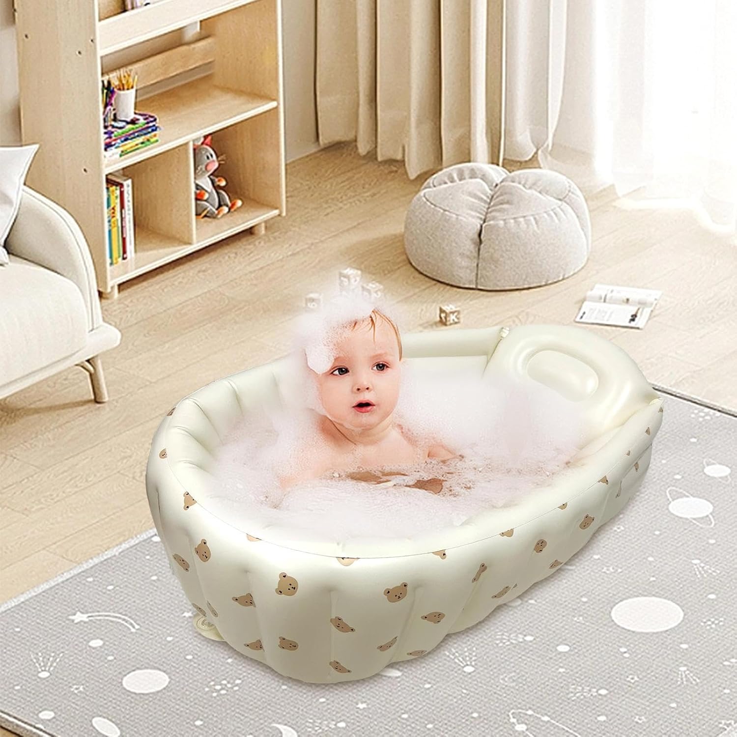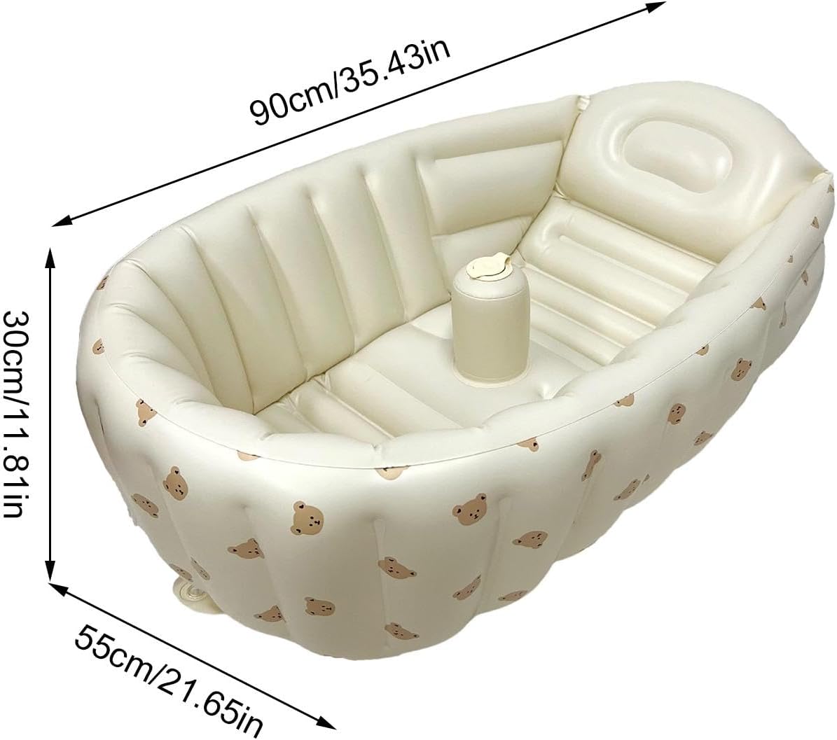☁Enhanced Toddler Bath Experience: Generously sized at 90x55x30cm, this inflatable bathtub provides ample space for kids aged 0-3, enhancing comfort for indoor and beachside fun.
