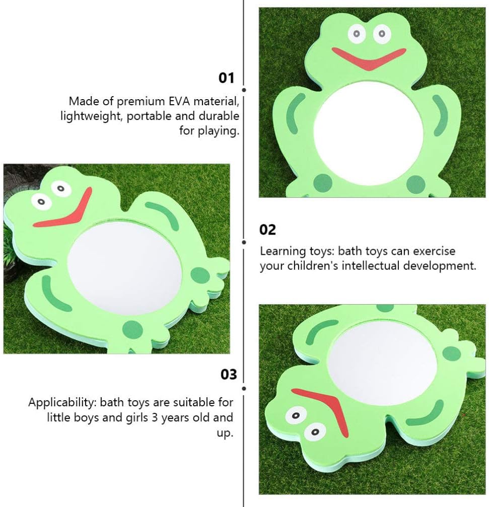 Kids Toys Toys Cartoon Bath Mirror Toy, EVA Bathing Plaything Frog- shape Bath Toy Lovely Bath Toy Mirror Children Frog Shower Playthings 2Pcs Travel Toddler Toys Baby Bath Tub