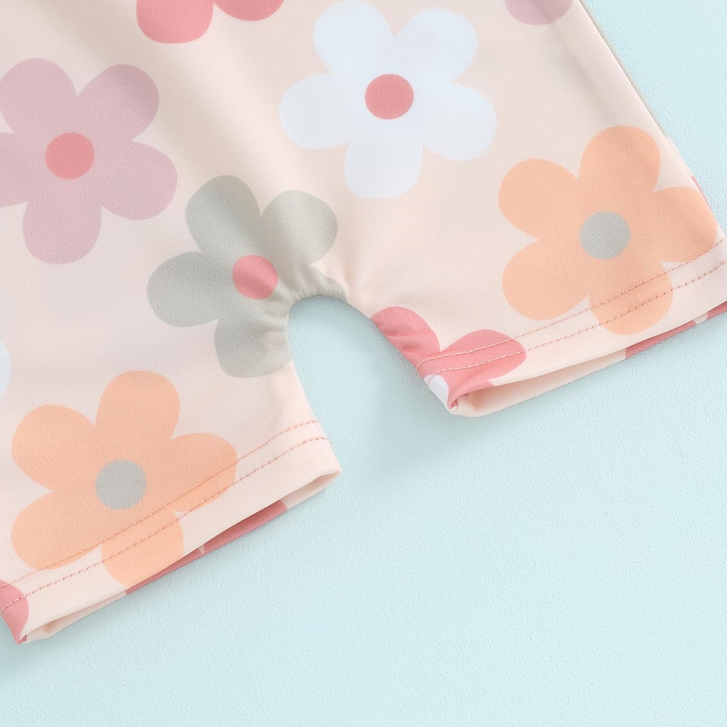 Toddler Girl Long Sleeve Swimsuit Floral Print Half Zipper Non-Pilling Rash Guard Swimwear Sunhat Set