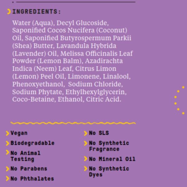 With Hand Moisturizing Shea Butter. Calm the lemon balm. Neem protection. Handmade & Extra-Soft Extra-Soft, Non-Irritating EveryDay Formula contains a moisturizing blend of unrefined certified fair shea butter and virgin coconut oil. With calming lemon balm, neem leaf and lavender essential oil, this soothing all-in-one shampoo and body gel leaves your baby’s hair and soft, clean skin. For a complete pH balanced system, use in combination with Daily Shea Butter Conditioner & Detangler for Babies and Up and Shea Butter Baby Lotion.