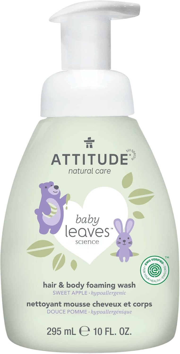 ATTITUDE 2-in-1 Hair and Body Foaming Wash for Baby, EWG Verified, Dermatologically Tested, Made with Naturally Derived Ingredients, Vegan, Sweet Apple, 295 mL
