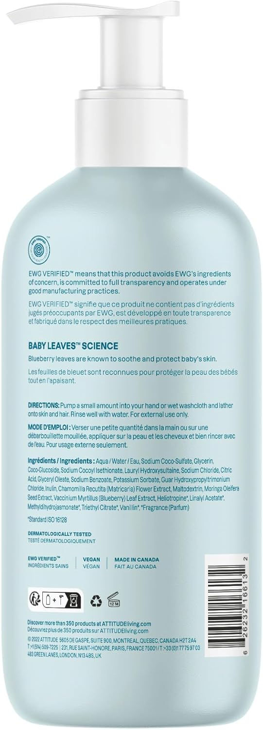 ATTITUDE 2in1 Hair Shampoo and Body Wash for Baby, Plant and Mineral-Based Gentle Formula, EWG Verified, Vegan Baby Products, Good Night, 473 mL