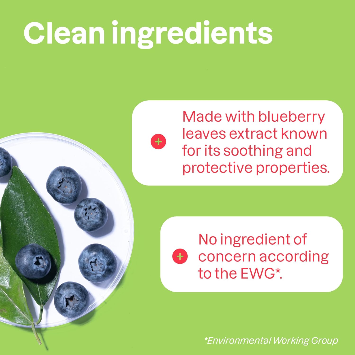 NATURALLY DERIVED INGREDIENTS: formulated with 97.6% naturally derived ingredients* including blueberry leaf extract with protective and soothing properties