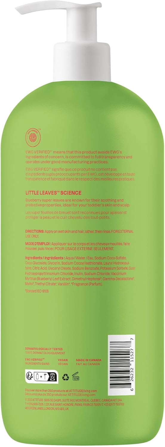 ATTITUDE Shampoo and Body Wash for Kids, EWG Verified Hair and Body Cleanser, Dermatologically Tested Soap, Plant and Mineral Based Bath Products, Vegan, Watermelon and Coco, 946 mL